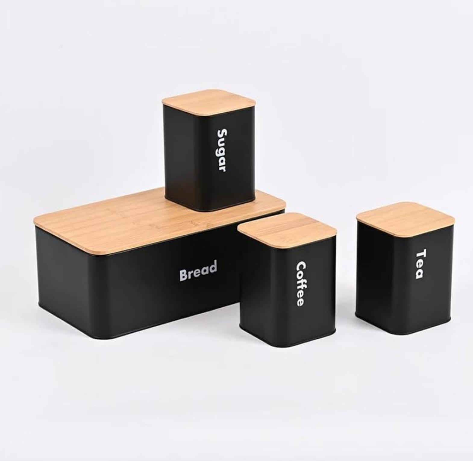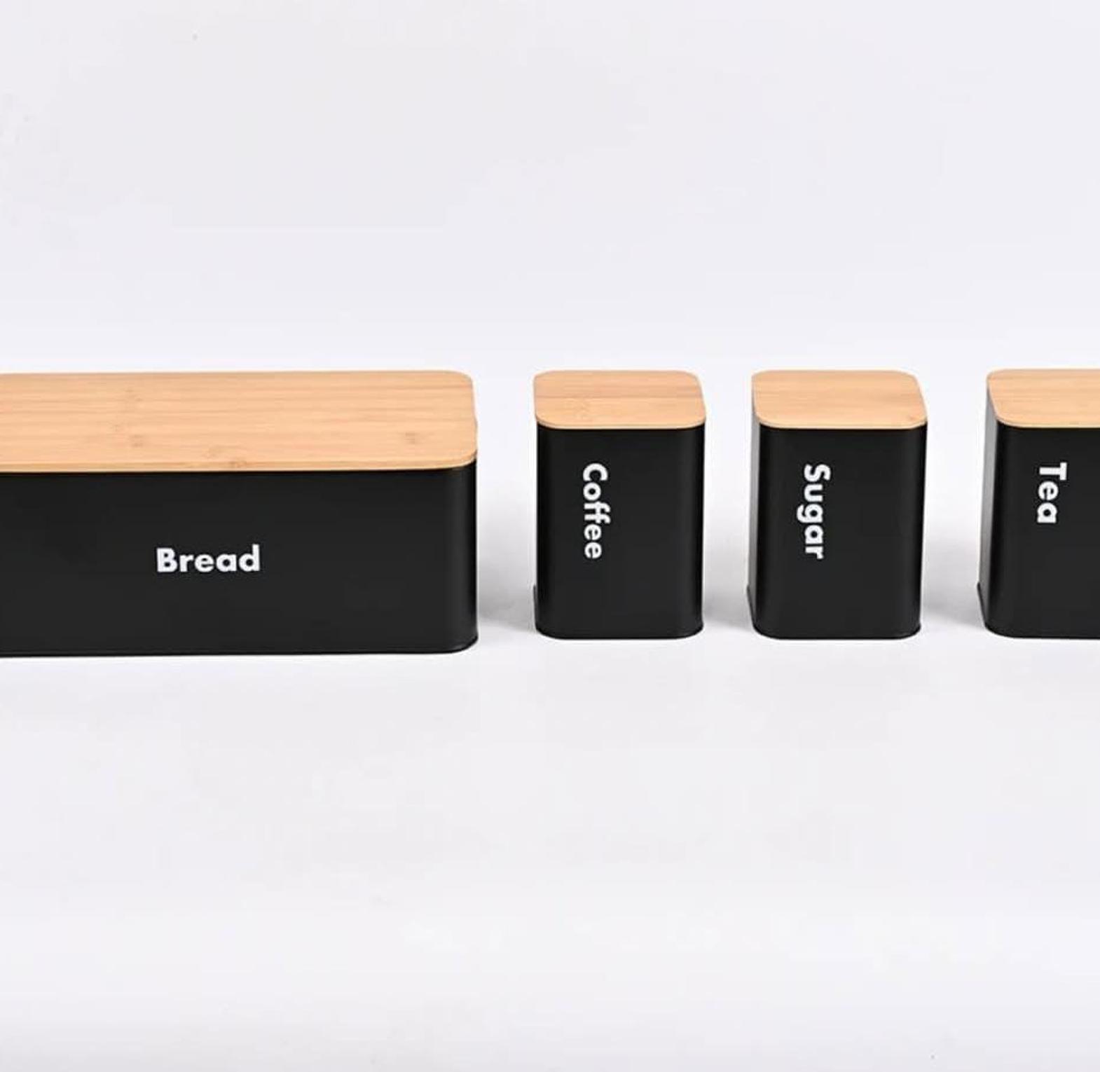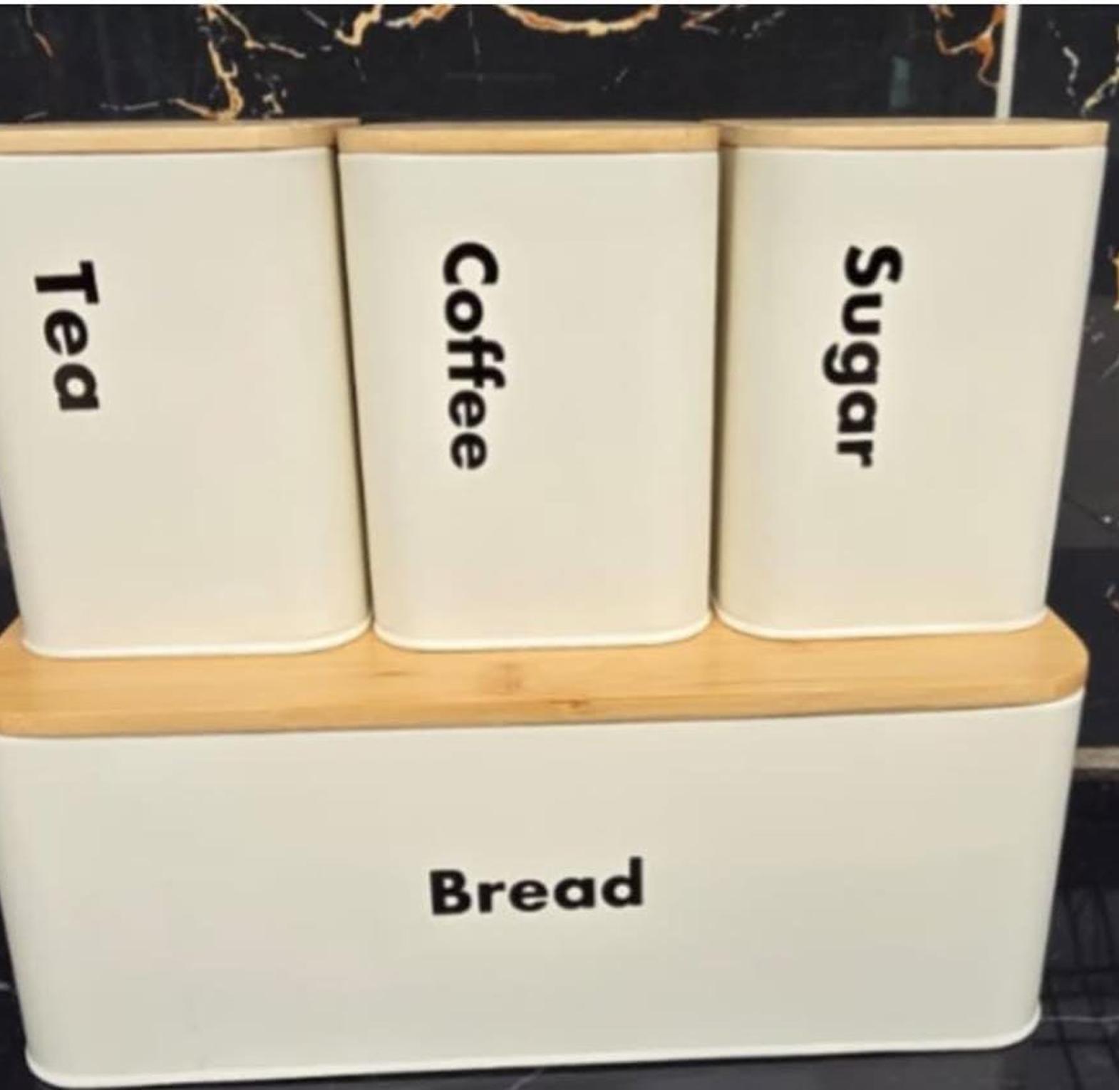Enhance your kitchen storage with this elegant bread bin and matching canister set, crafted for both practicality and style. The spacious bread bin keeps loaves fresh and protected, while the airtight canisters securely store coffee, sugar, and tea, preserving their flavors and freshness. Made from high-quality, durable materials, this set combines functionality with a sleek, modern design that complements any kitchen décor. The easy-to-open lids ensure quick access, while the compact yet spacious build helps keep countertops clutter-free. Perfect for those who value both organization and aesthetics, this set is a must-have for any well-arranged kitchen.