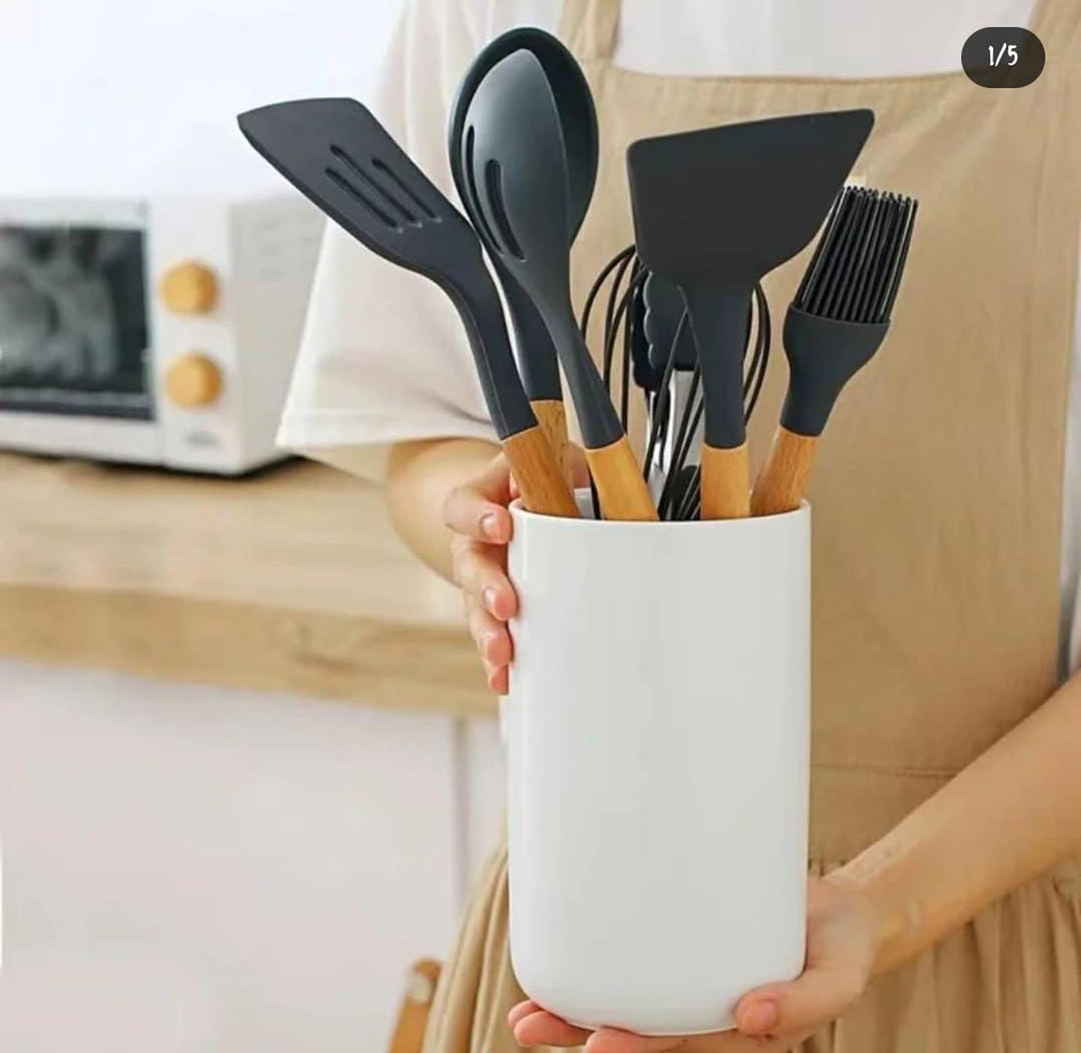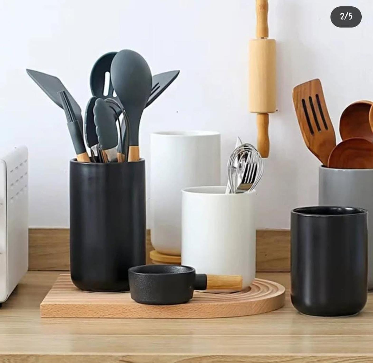 Add both function and flair to your kitchen with this ceramic cooking spoon holder, designed to neatly store your cooking spoons, spatulas, and other utensils while you prepare your meals. Made from high-quality, durable ceramic, this holder features a sturdy base that keeps your utensils upright and within easy reach, preventing messy drips on your countertops. Its sleek design complements any kitchen décor, while the easy-to-clean surface ensures maintenance is hassle-free. Perfect for both novice cooks and seasoned chefs, this spoon holder provides a convenient and stylish solution for keeping your kitchen organised and your cooking experience more enjoyable.