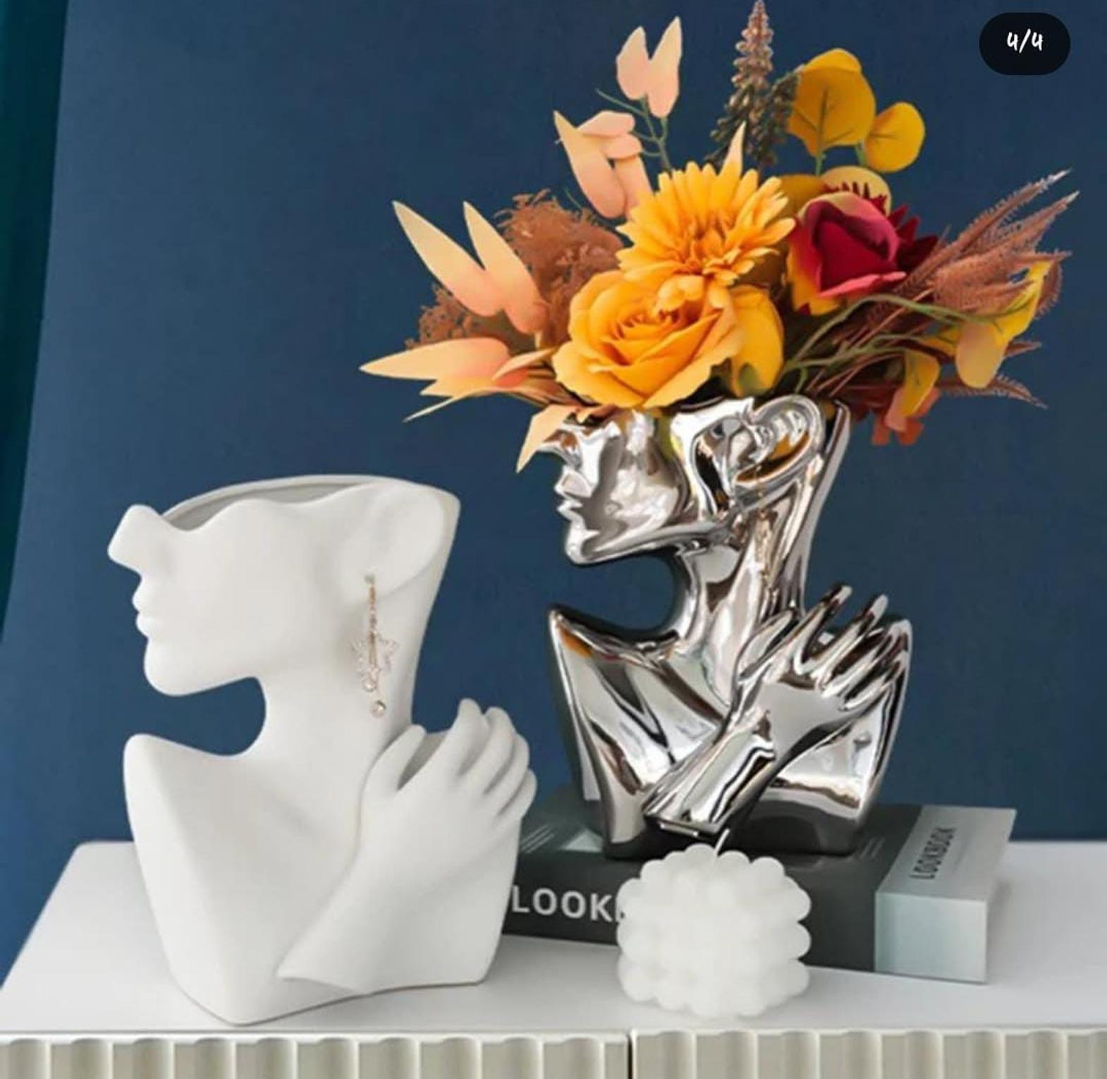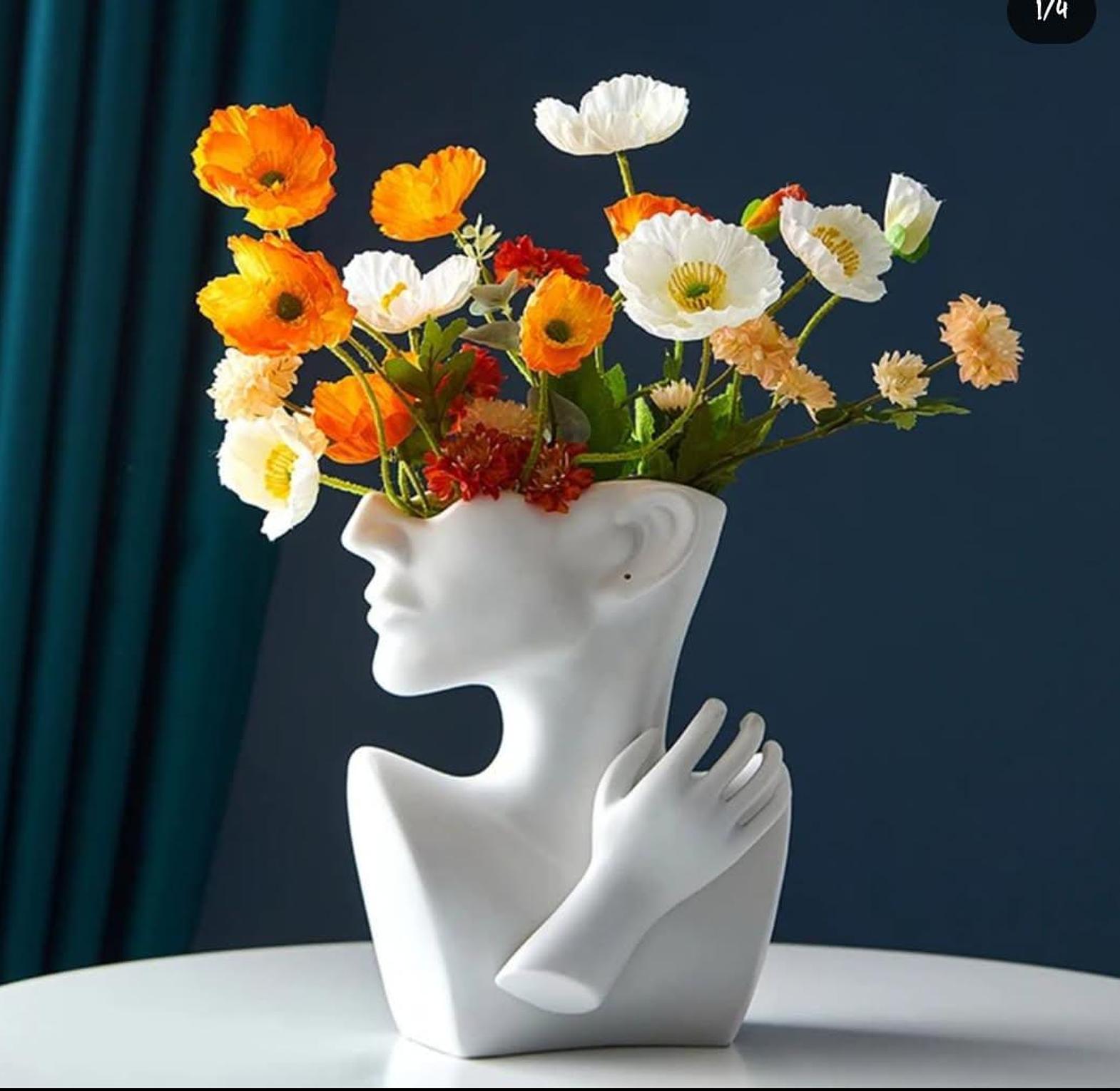 This ceramic face flower vase is a bold and artistic addition to your home decor, seamlessly combining form and function. The intricately crafted face design adds a playful and contemporary touch to any room, making it an eye-catching focal point whether placed on a shelf, side table, or mantel. Made from high-quality ceramic, the vase provides a durable and stable base for your favourite fresh or artificial flowers, while the smooth finish and carefully sculpted features offer a modern aesthetic. Perfect for adding character to living rooms, bedrooms, or even office spaces, this vase brings a touch of whimsy and elegance, making it a standout piece that sparks conversation and elevates your interior style.