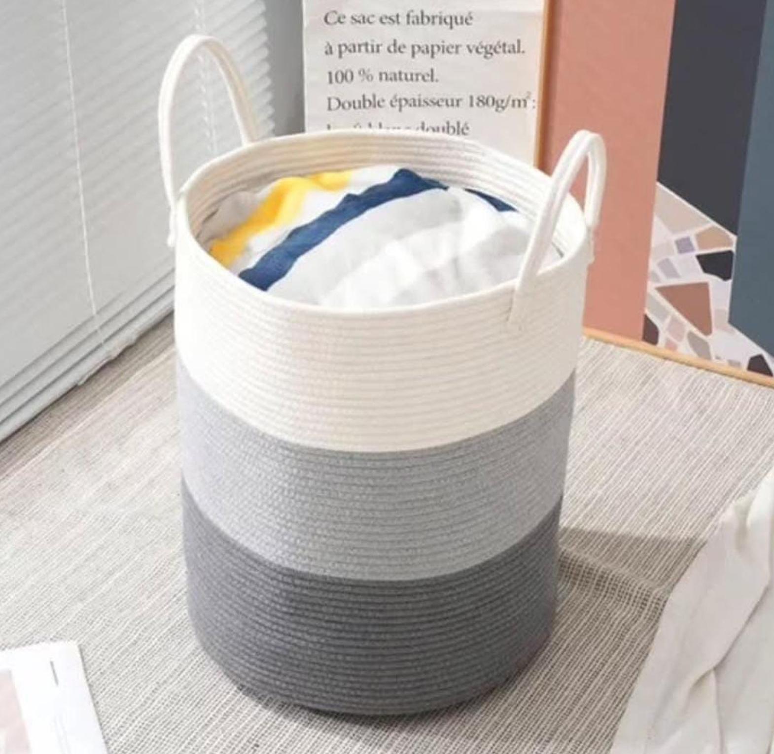 Organize your home with this durable and multifunctional cotton rope basket, designed to blend practicality with a touch of rustic charm. Made from soft yet sturdy cotton rope, this basket is gentle on hands and surfaces while being strong enough to hold laundry, toys, or blankets. Its spacious interior accommodates large loads, making it ideal for decluttering bedrooms, living rooms, or nurseries. The neutral design complements any decor style, from modern to farmhouse, while its lightweight build and sturdy handles ensure easy portability. Whether for functional storage or as a decorative piece, this basket is a stylish solution for maintaining an organized and cozy home.