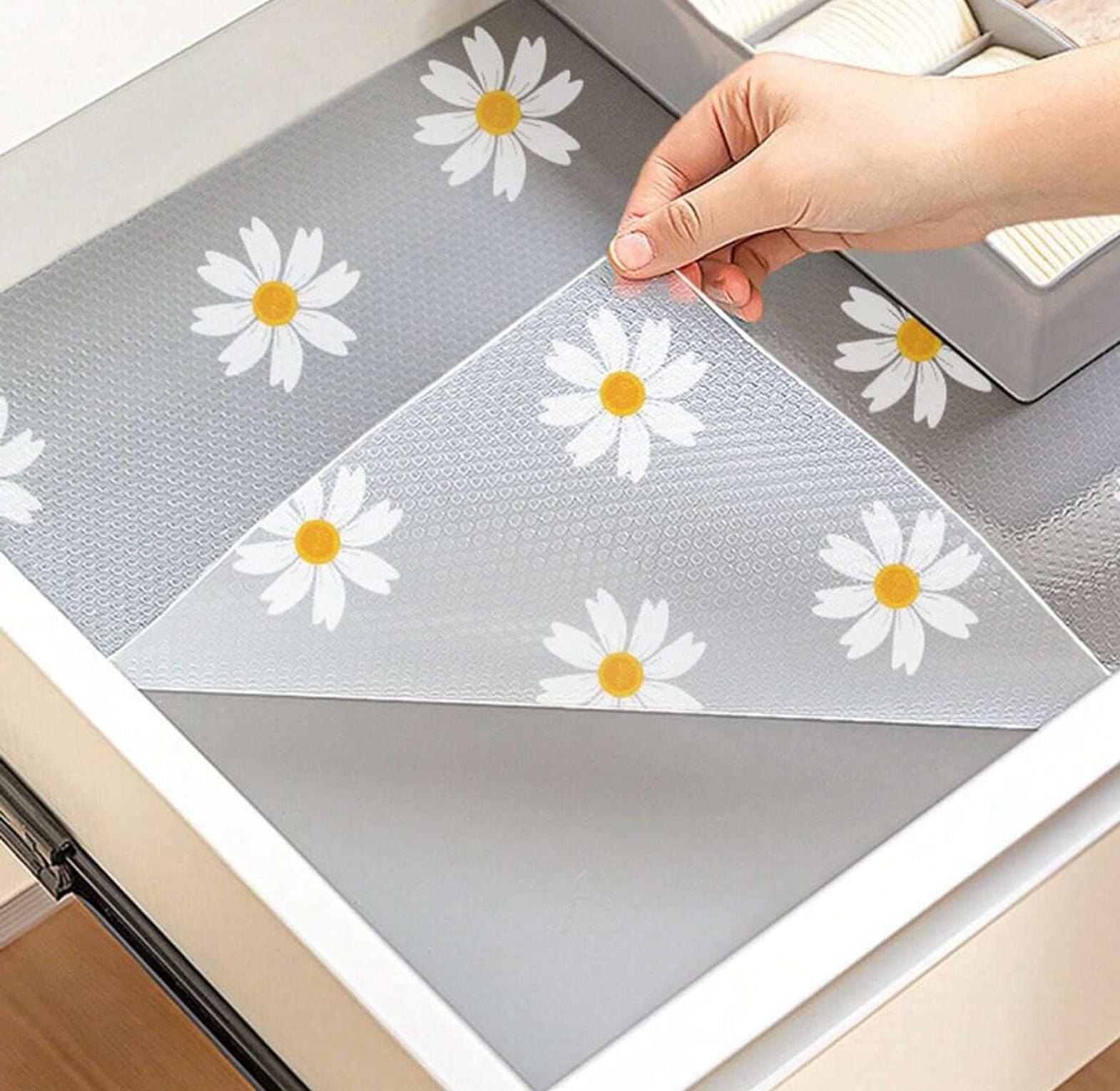 Add a touch of charm and protection to your storage spaces with this Daisy Print Drawer & Shelf Liner. Made from high-quality waterproof and oil-proof material, it keeps your shelves, cabinets, and drawers clean and protected from spills, stains, and scratches. Measuring 45cm by 500cm, it can be cut to fit different surfaces with ease.