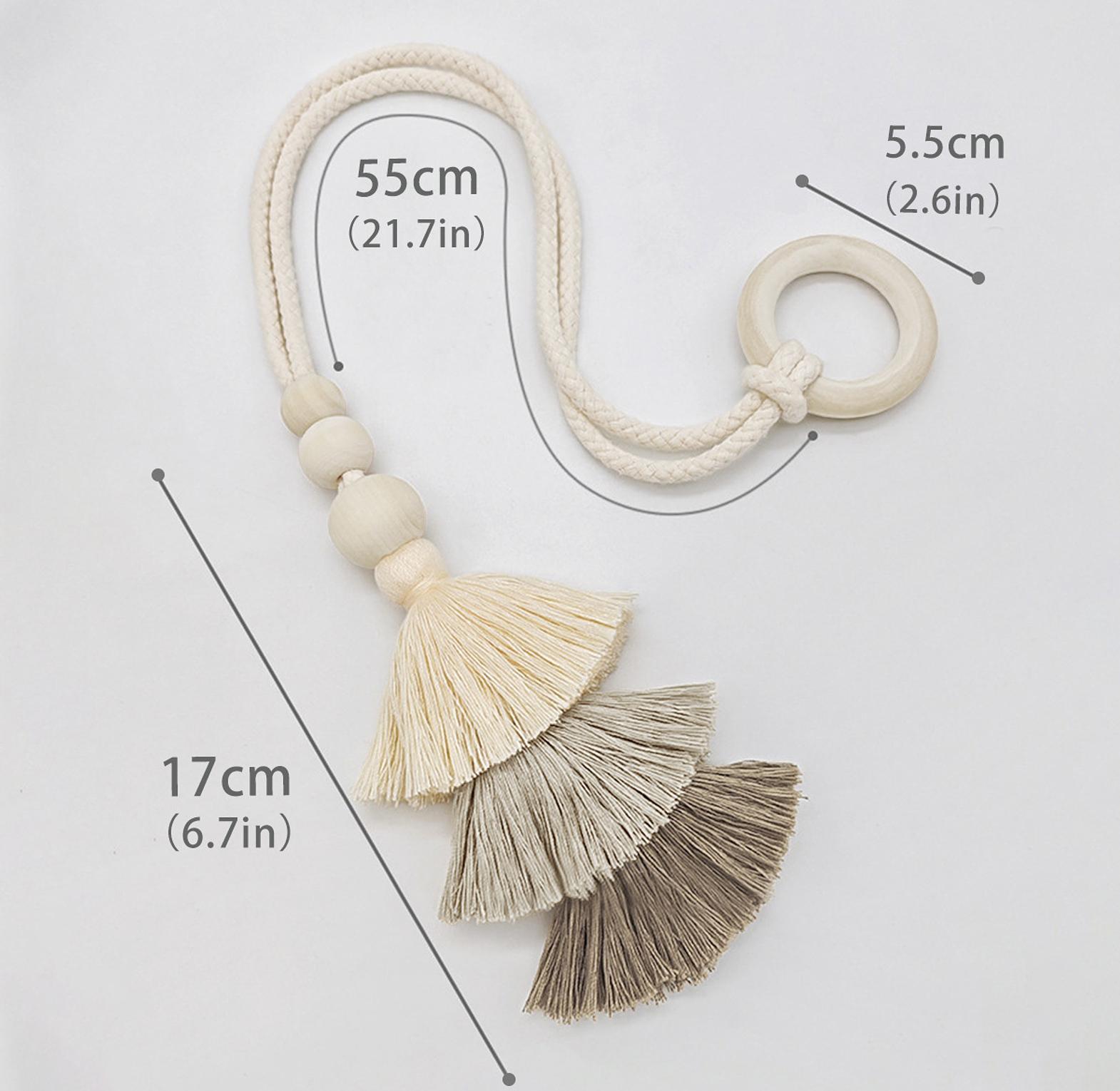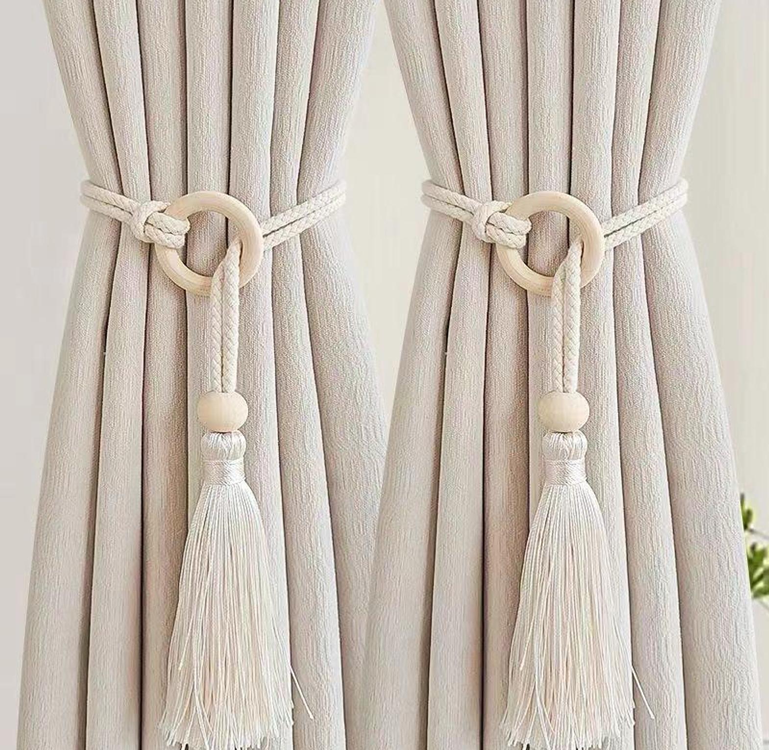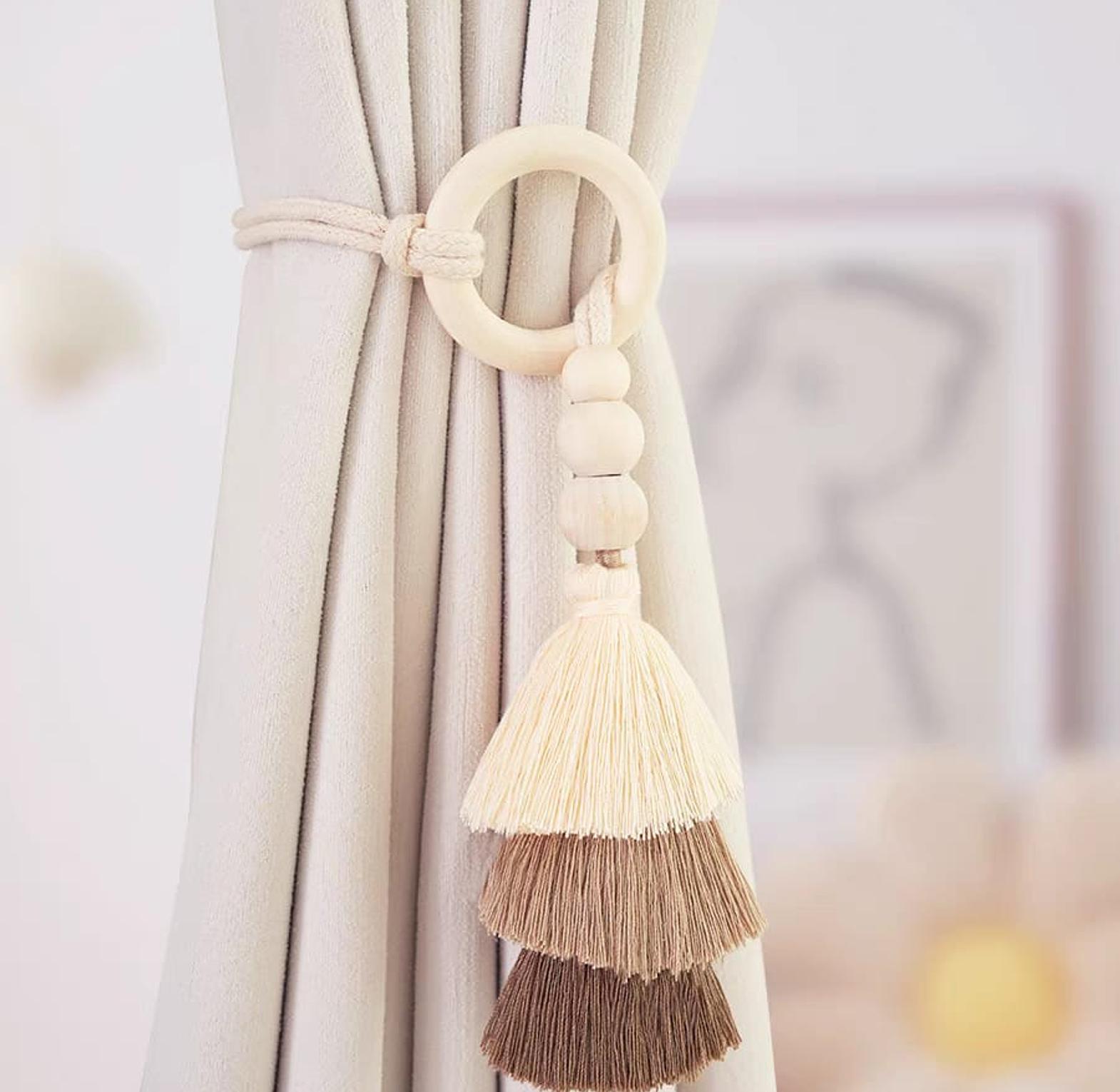 Enhance your window décor with our Elegant Curtain Tiebacks with Wooden Beads & Tassels — the perfect finishing touch for both classic and contemporary interiors. These decorative tiebacks are designed to neatly hold your curtains in place while adding a stylish, handcrafted accent to your space. Each tieback features smooth wooden beads and luxurious tassels that create a warm, natural look. Ideal for living rooms, bedrooms, or any space that needs a subtle yet refined curtain accessory. Sold as a pair (2 pieces) for Kshs.1,450. For precise sizing, please refer to the measurements shown in the last slide. A beautiful blend of functionality and elegance, these tiebacks are sure to elevate any room.