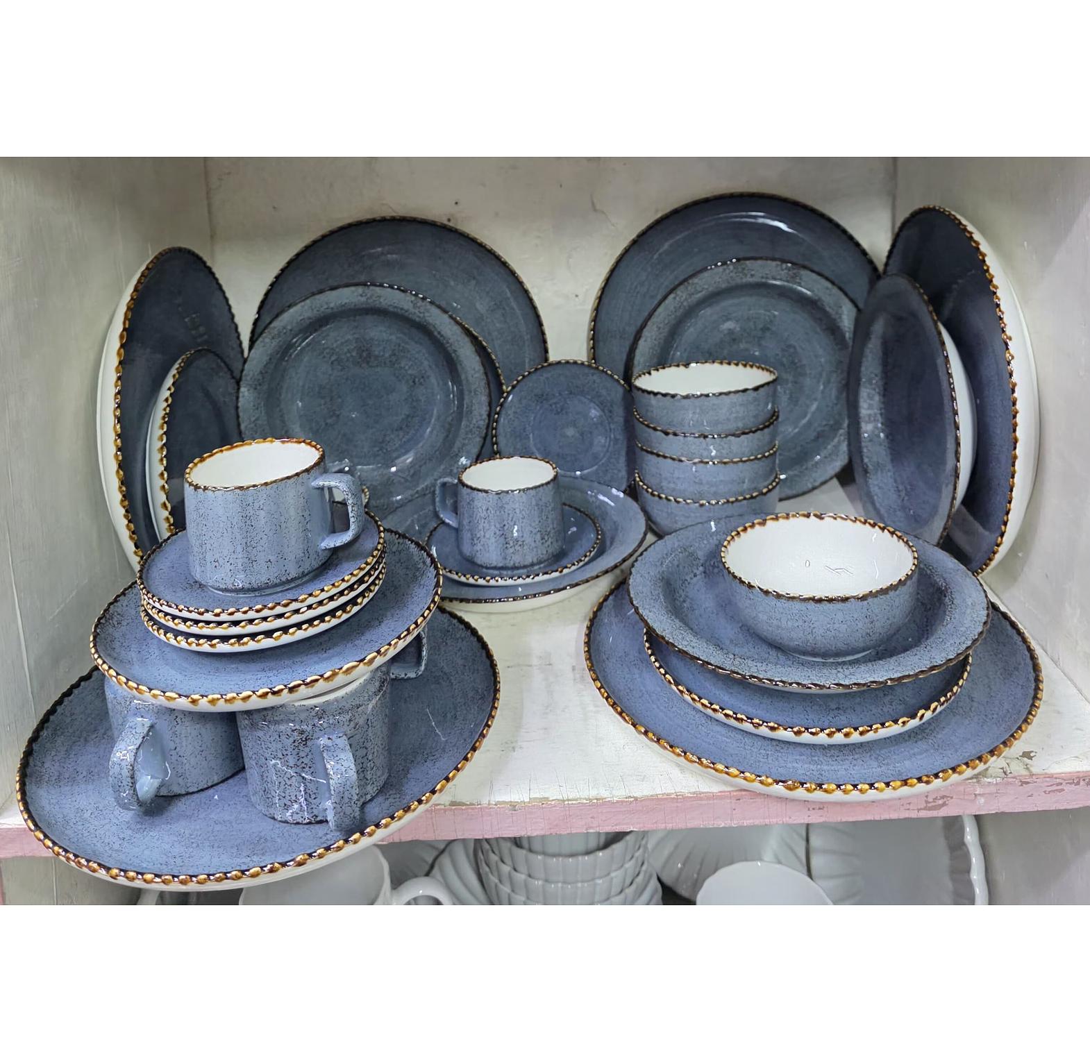 This complete dinnerware set is microwave-safe and dishwasher-friendly, offering both luxury and practicality for modern homes. Ideal for family meals, entertaining guests, or formal dining, it balances durability with visual elegance. Available in bluish and grey tones, the set complements contemporary, classic, and minimalist table settings.