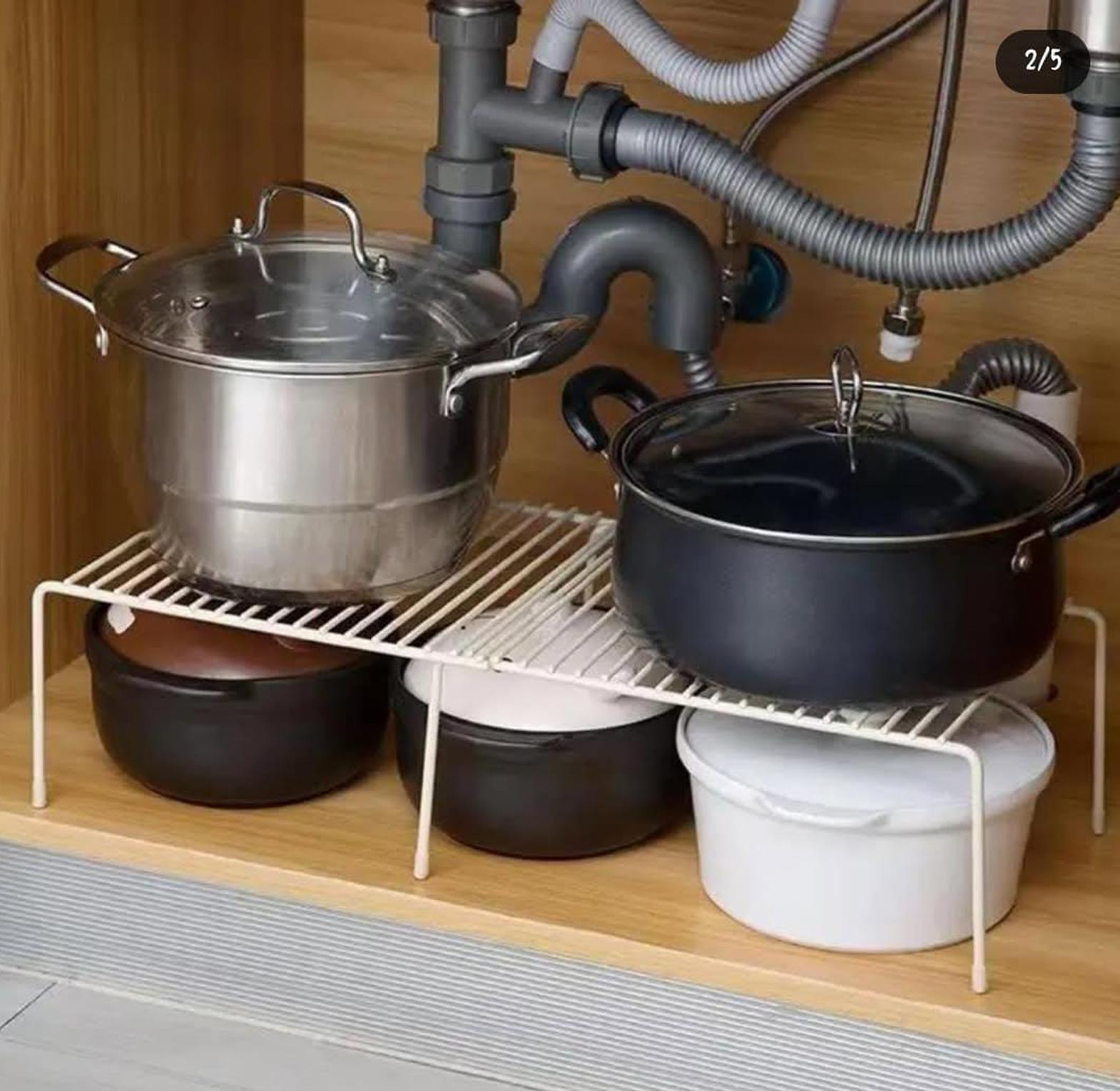 This expandable metallic shelf raiser is a versatile solution for creating extra storage in your kitchen, office, or any space in need of a little more organisation. Crafted from sturdy, high-quality metal, the shelf raiser can be adjusted to different widths, allowing it to fit a variety of shelf sizes and providing flexibility to accommodate various items. Its sleek metallic finish not only adds a modern touch to your shelving but also enhances durability, ensuring long-lasting use. Perfect for stacking plates, jars, books, or office supplies, this raiser effectively maximises your available shelf space while keeping everything neat and easily accessible. Whether for a small apartment or a busy household, it offers both function and style to optimise your storage needs.