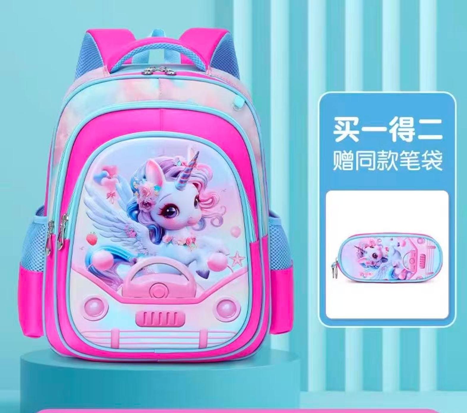 A fun and protective 3D cartoon school backpack set featuring a matching pencil pouch. Designed to be lightweight, waterproof, and supportive of healthy posture—perfect for grade 1 to grade 3 learners.