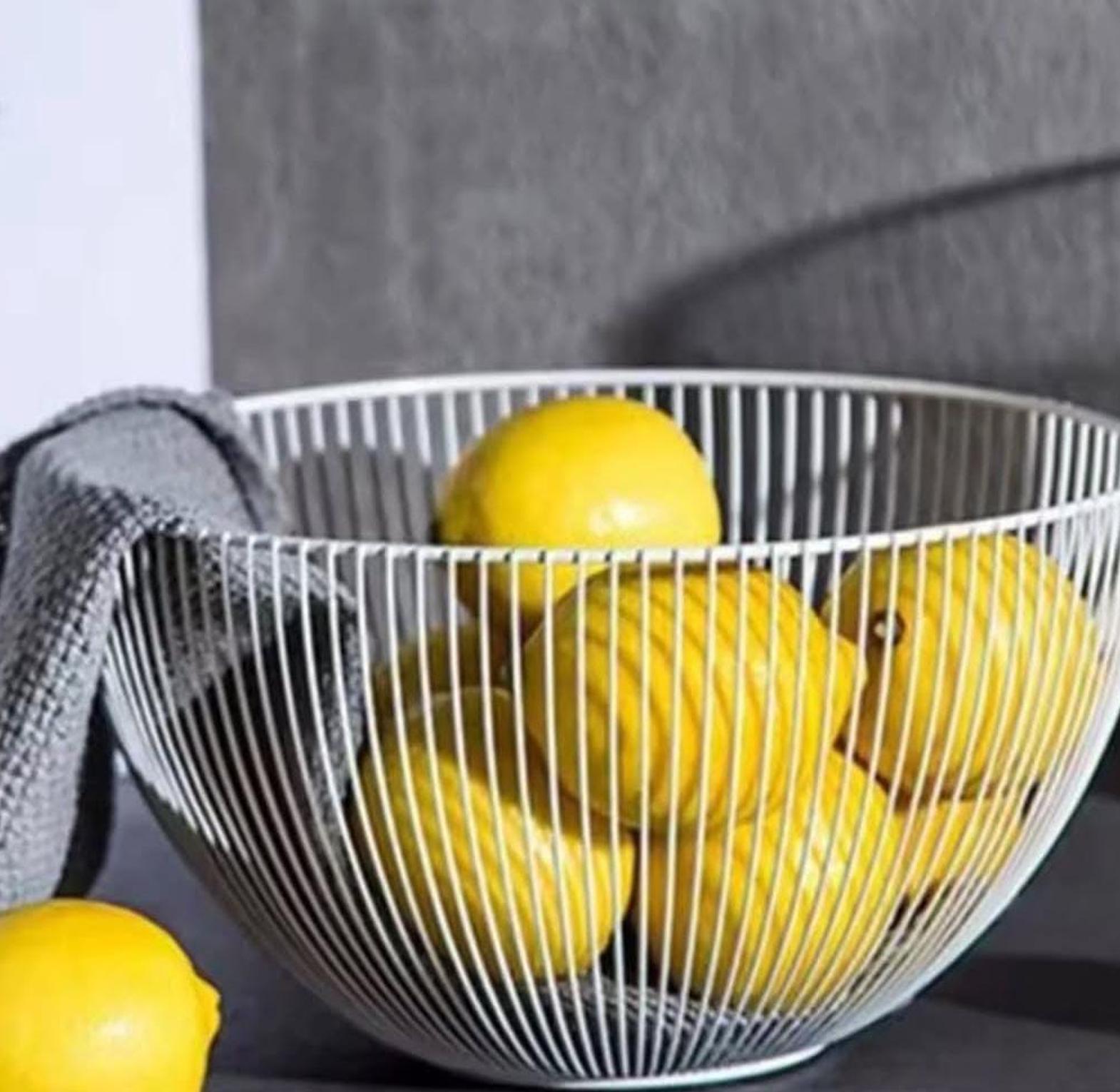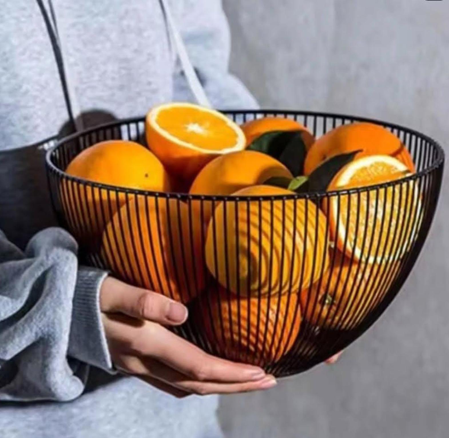 This large metallic fruit basket is both a functional storage solution and a striking centrepiece for your kitchen or dining area. Crafted from high-quality, rust-resistant metal, it offers durability while maintaining a lightweight, open design that promotes proper air circulation to keep your fruits fresh for longer. Its generous size provides ample space to hold a variety of fruits, from vibrant apples and oranges to cascading bunches of bananas or grapes. With its sleek, contemporary finish and minimalist aesthetic, this fruit basket adds a touch of sophistication to any decor while keeping your produce beautifully displayed and easily accessible.