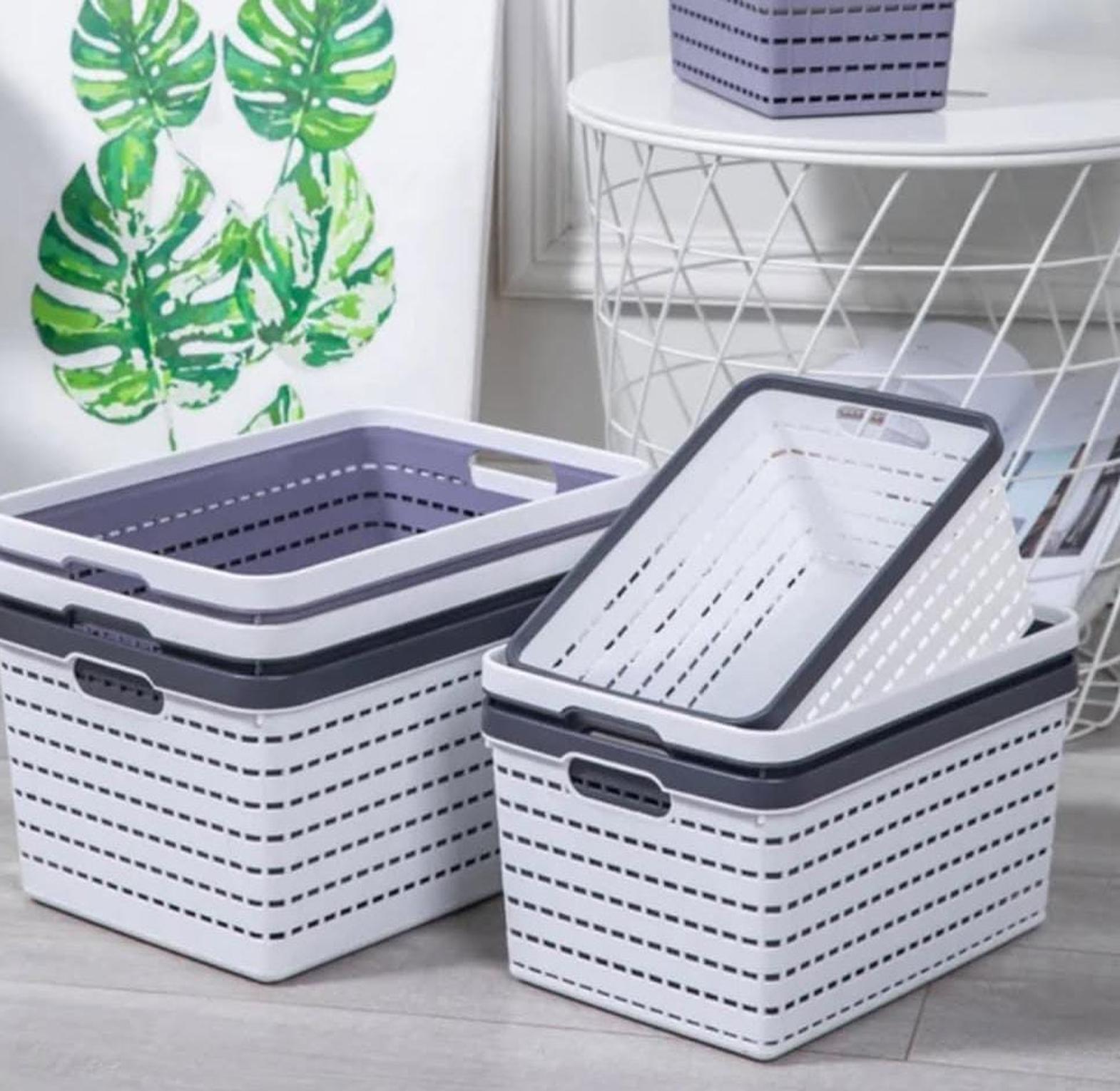 Add both style and functionality to your home with this large-size storage basket, perfect for keeping your space organized and clutter-free. Made from durable materials, it provides ample space for storing a variety of items, from laundry and blankets to toys and seasonal décor. The spacious design allows for easy access, while the sturdy handles make it easy to move around or transport from room to room. Whether placed in a closet, living room, or bedroom, this basket’s clean, versatile look seamlessly complements any home décor. Practical and attractive, it's an essential piece for organizing your space without sacrificing style.