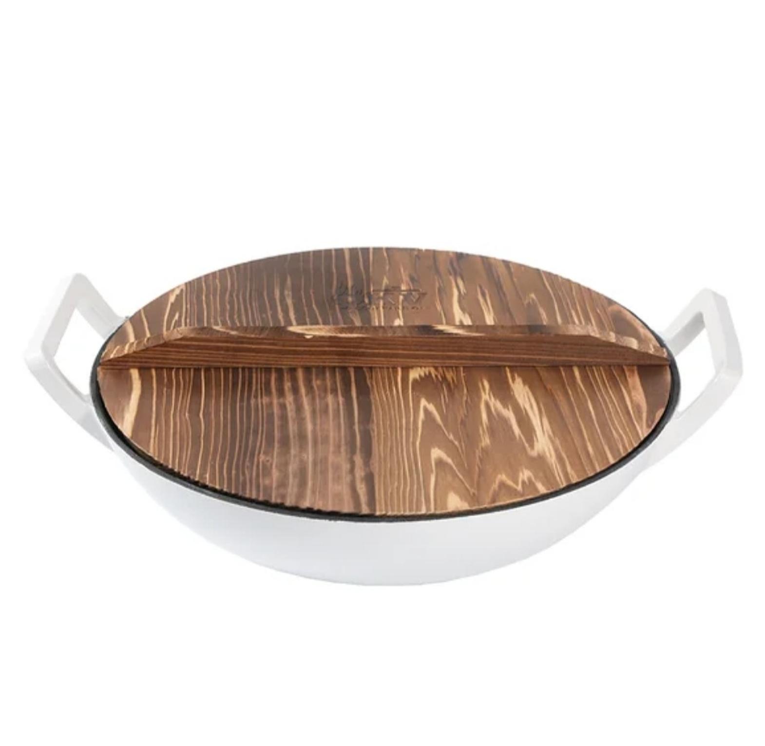 The wok comes with a high-quality wooden lid to lock in heat and flavour while cooking. Suitable for gas cookers, induction, and electric stoves, it’s a versatile and durable kitchen essential. Available in Red, Orange, and White, this cast iron wok adds both performance and style to your kitchen, making it ideal for modern Kenyan households.