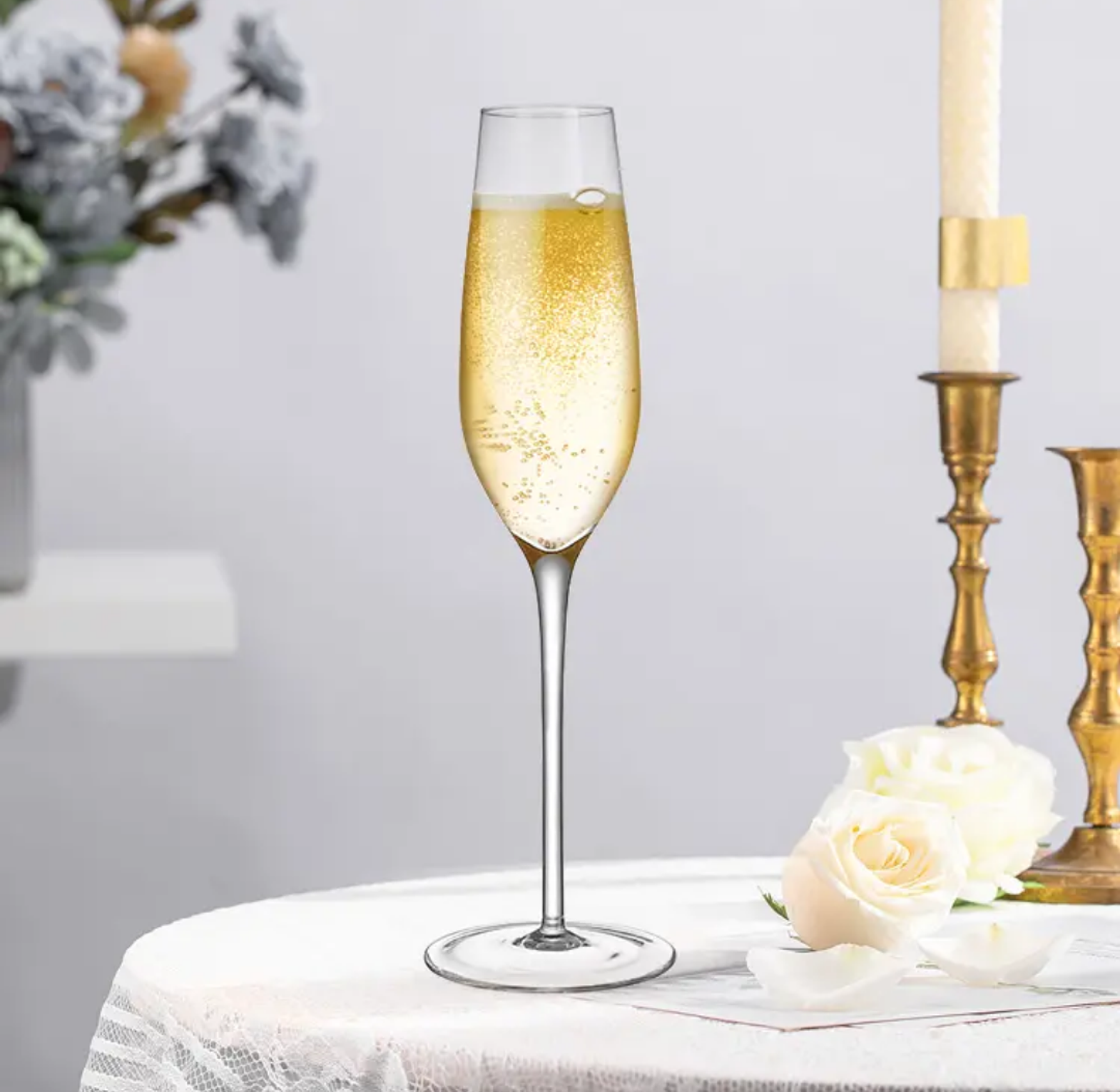 Bring a refined touch to your celebrations with our Long Stem Crystal Champagne Glasses, available as a stylish set of 6. Expertly crafted from high-quality crystal, these glasses feature tall, slender stems that not only enhance their graceful silhouette but also help maintain the chill of your sparkling wine or champagne. Designed for clarity and brilliance, each glass offers a delicate balance of beauty and durability, making them ideal for weddings, dinner parties, or elegant everyday use. Whether you're raising a toast or setting a chic table, this set delivers timeless sophistication and exceptional value.
