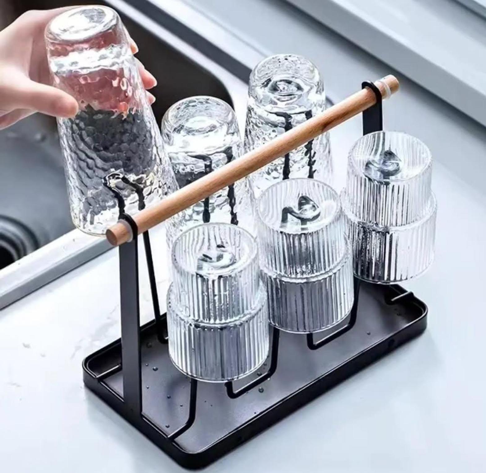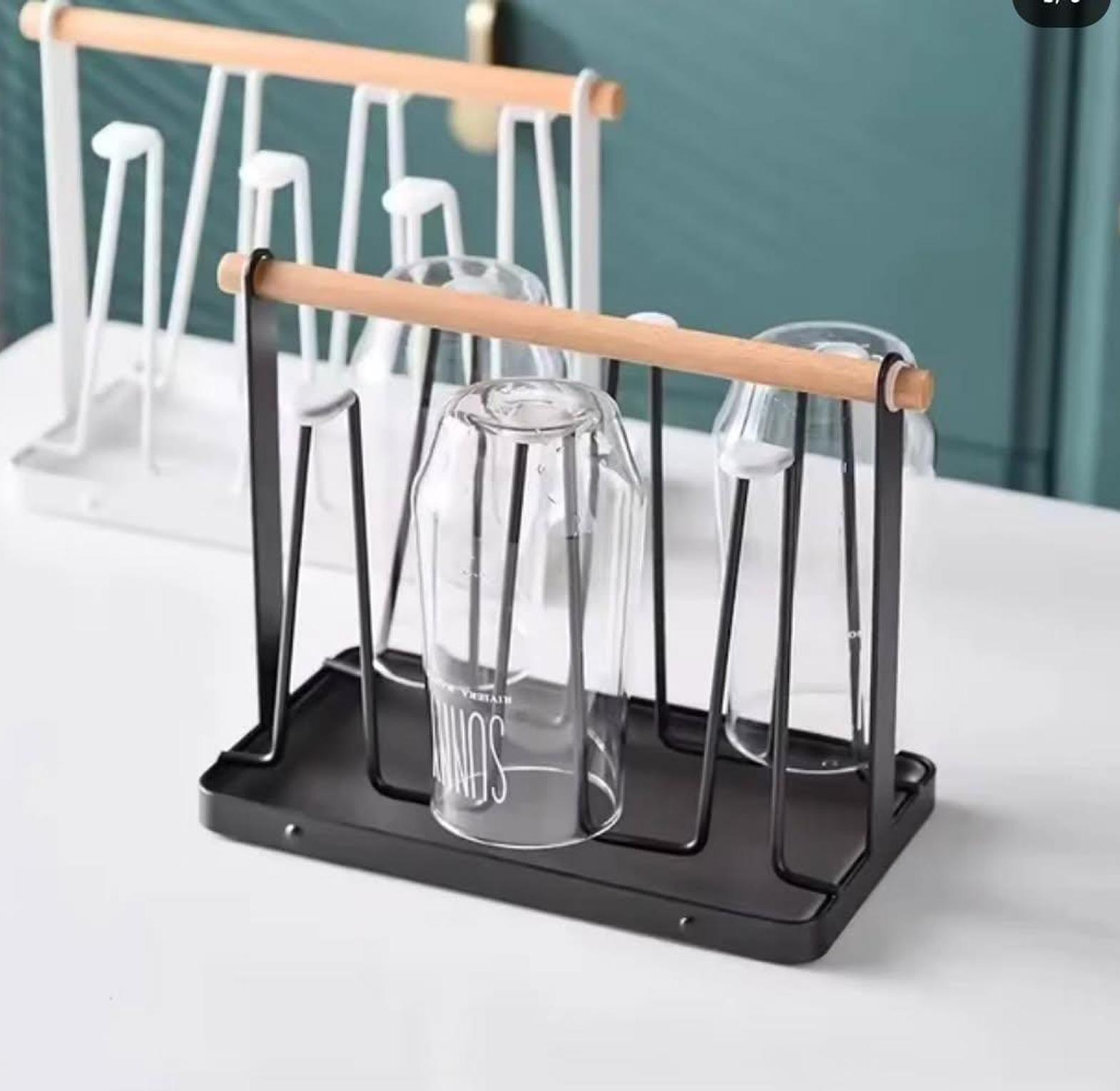This metallic glass/cup holder combines functionality with a modern aesthetic, offering a stylish solution for storing and organizing your drinkware. Crafted from durable metal, it provides a secure place to hold your glasses or cups, keeping them easily accessible while minimizing clutter. The wooden handle adds a rustic, yet elegant touch, making it simple to carry and move the holder as needed. Whether placed in the kitchen, dining room, or bar area, this piece enhances your space with its contemporary look while keeping your glasses neatly organized and within reach. Perfect for entertaining or everyday use, it brings both convenience and style to your home.