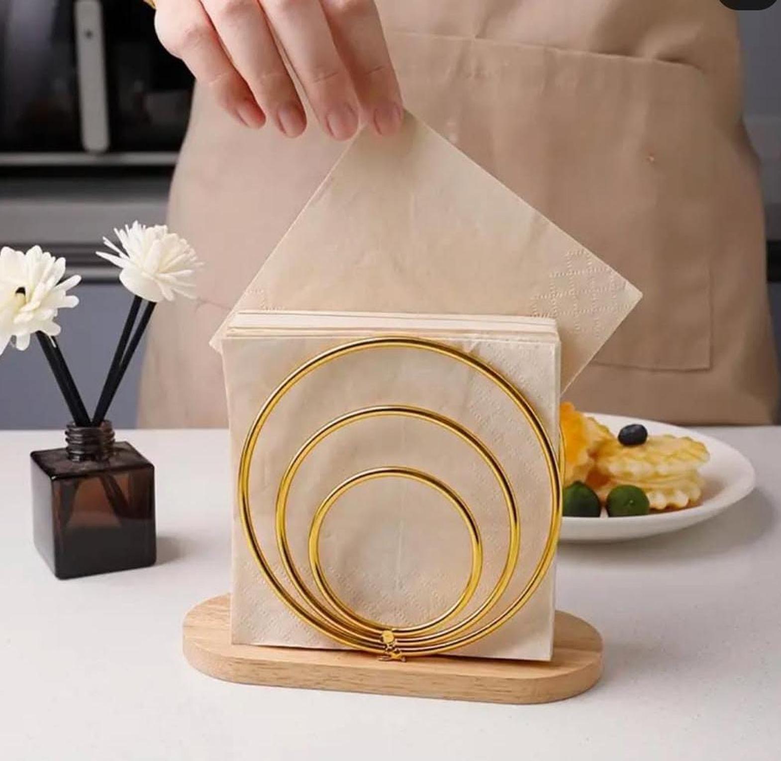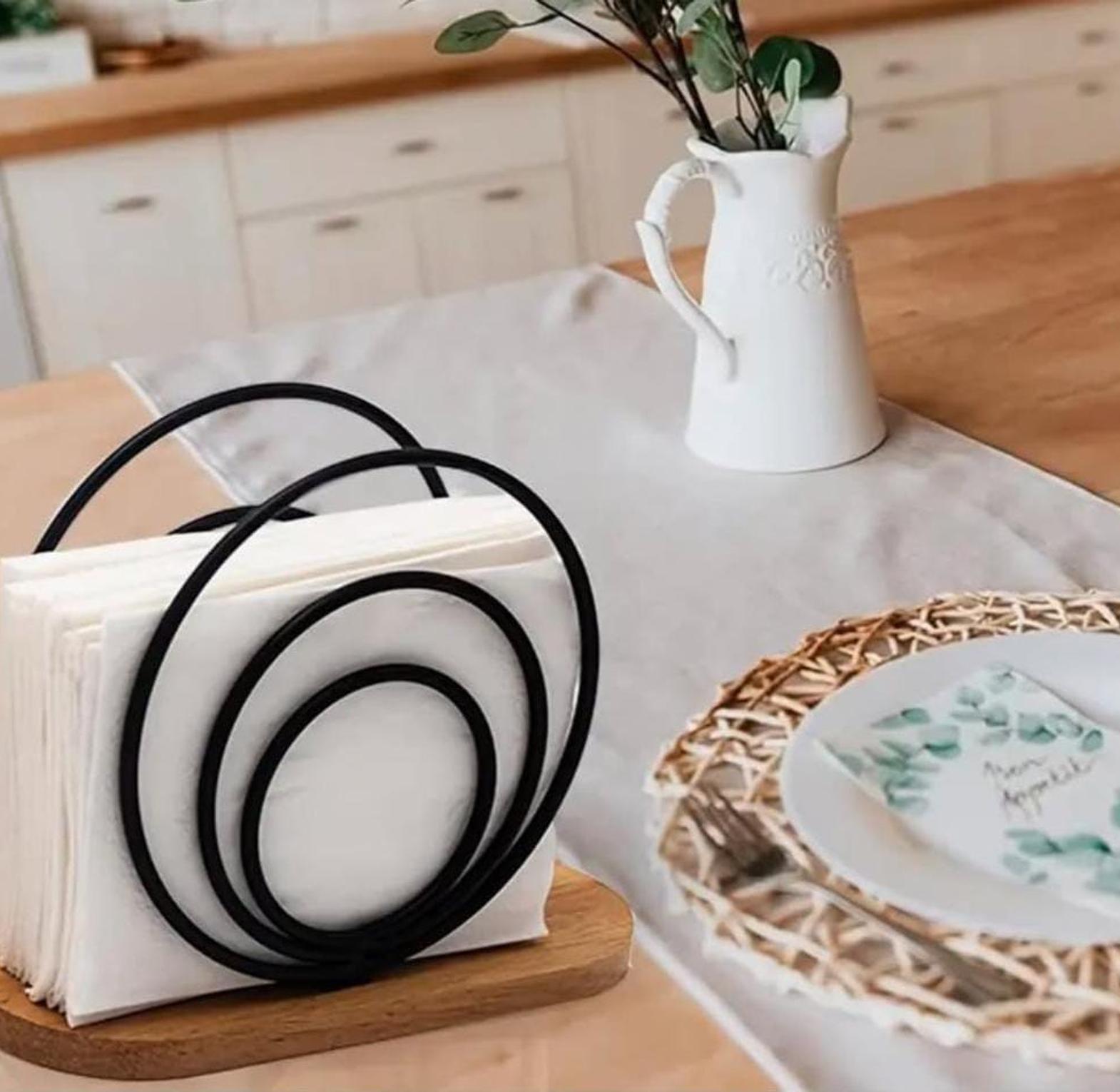 This metallic serviette holder with a wooden base is the perfect fusion of practicality and contemporary design, making it an elegant addition to your dining table or kitchen. The sleek metallic frame not only ensures durability but also provides a modern touch, while the solid wooden base adds warmth and stability, preventing slips and scratches on surfaces. Designed to securely hold your serviettes upright, it allows for easy access and keeps them neat and organised, whether for daily use or special occasions. Its compact yet visually striking design complements a range of decor styles, bringing both functionality and sophistication to your space.
