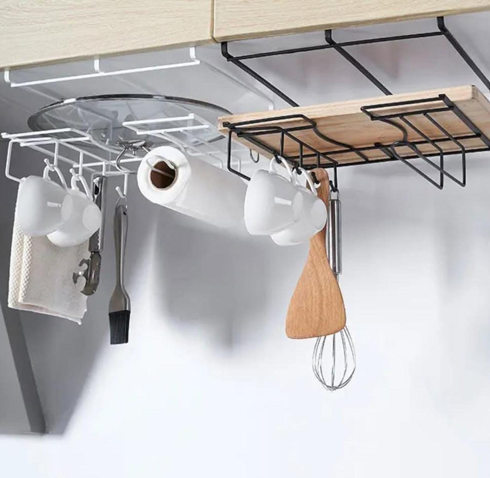 Our metallic under-the-shelf organizer with hooks is a smart, space-saving solution designed for modern homes where every inch counts. Crafted from durable, rust-resistant metal, it effortlessly slides onto standard shelves to create instant storage beneath cabinets or shelves—perfect for mugs, utensils, keys, or small kitchen tools. The integrated hooks provide quick access to frequently used items, while the open-wire design ensures visibility and airflow, preventing moisture buildup. Whether used in the kitchen, closet, or office, its clean metallic finish and minimalist profile blend seamlessly with a range of interiors, from industrial lofts to traditional pantries. It’s the kind of no-nonsense organizer that adds functionality without the need for tools, drilling, or complicated installation—ideal for renters, busy households, or anyone looking to tidy up with style and efficiency.