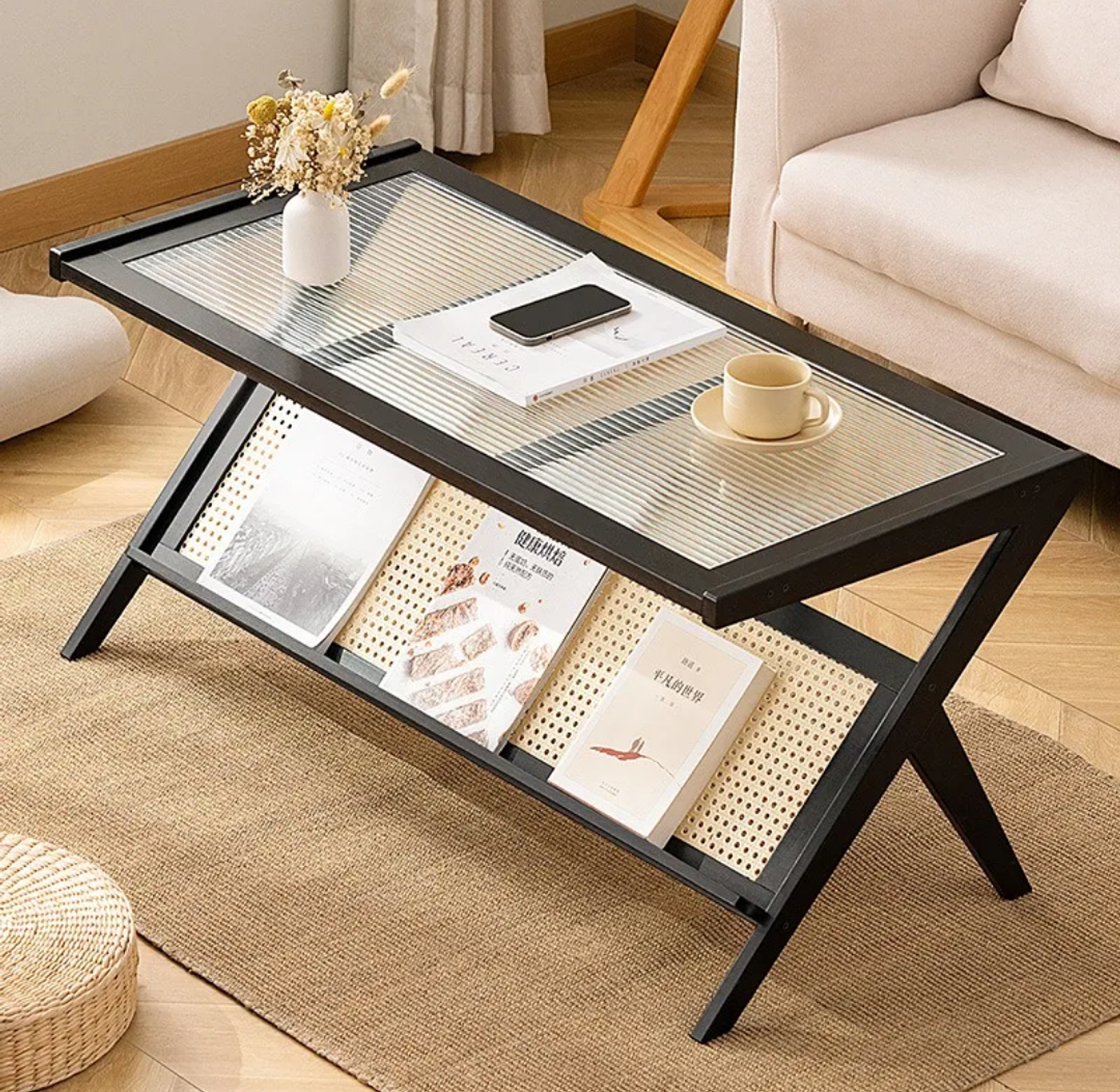 Elevate your living space with this stylish coffee table featuring a rattan magazine/book holder built right into its base. Measuring 100cm by 50cm by 49cm, it offers the perfect balance of design and functionality — the glass tabletop adds a modern touch while the rattan storage section brings warmth and texture.