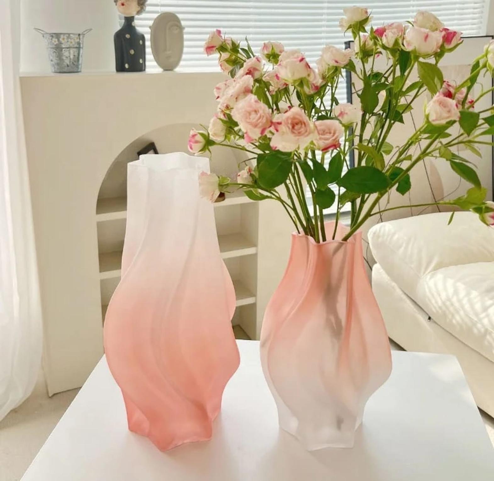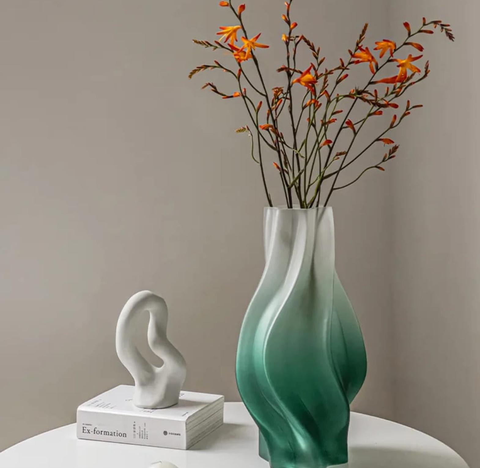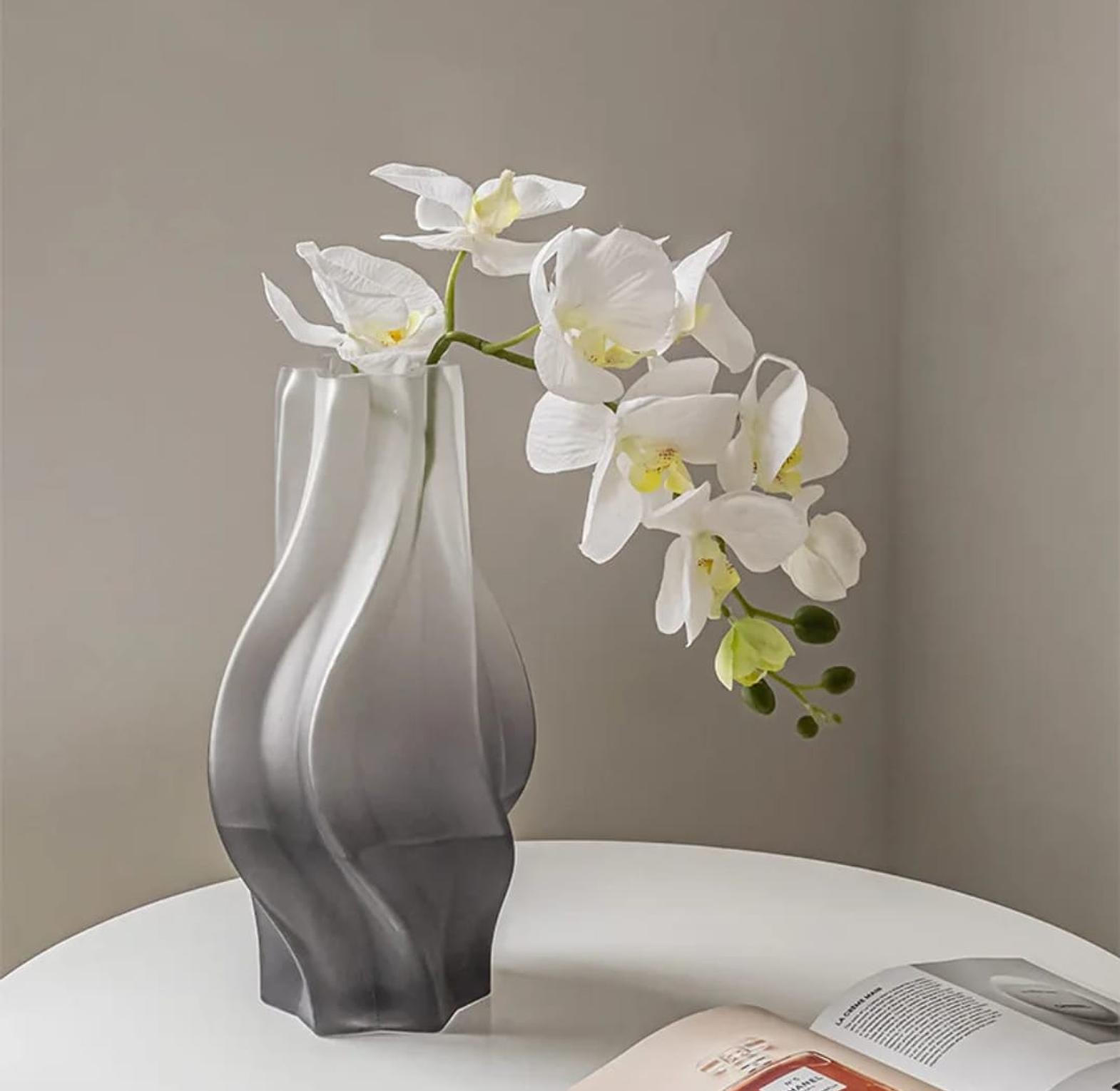 Bring sophistication and style to your space with this Modern Wave Glass Flower Vase, designed with a unique fluid silhouette that beautifully catches light and complements any setting. Standing 32cm tall with an 8cm top diameter, this vase is perfect for showcasing fresh blooms or dried arrangements. Its premium frosted glass finish and soft gradient tones (pink, grey, or green) make it an eye-catching centerpiece for living rooms, dining tables, or office décor. Ideal for modern and minimalist interiors, this vase blends functionality with timeless elegance — a must-have statement piece for every stylish home in Kenya.