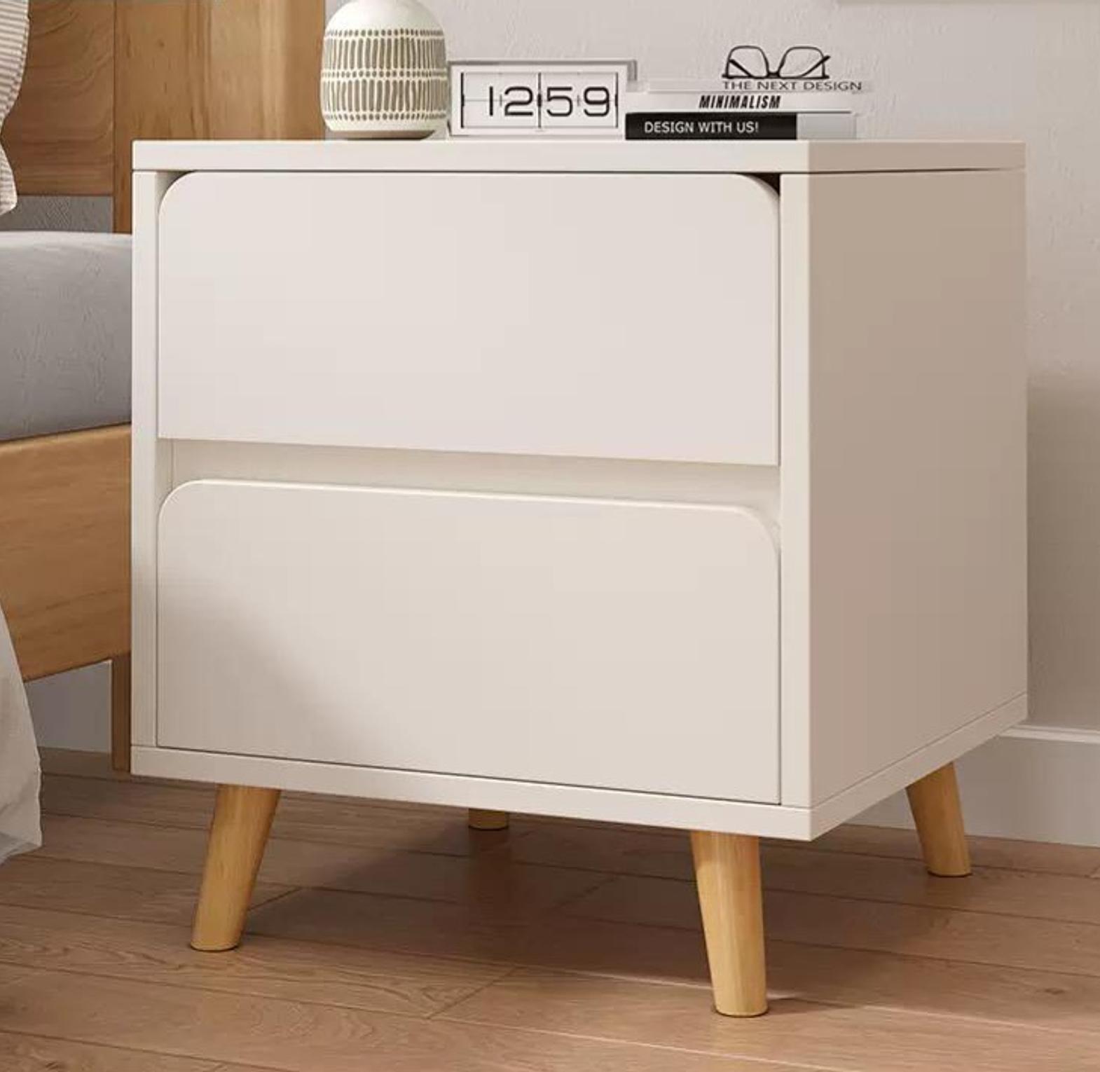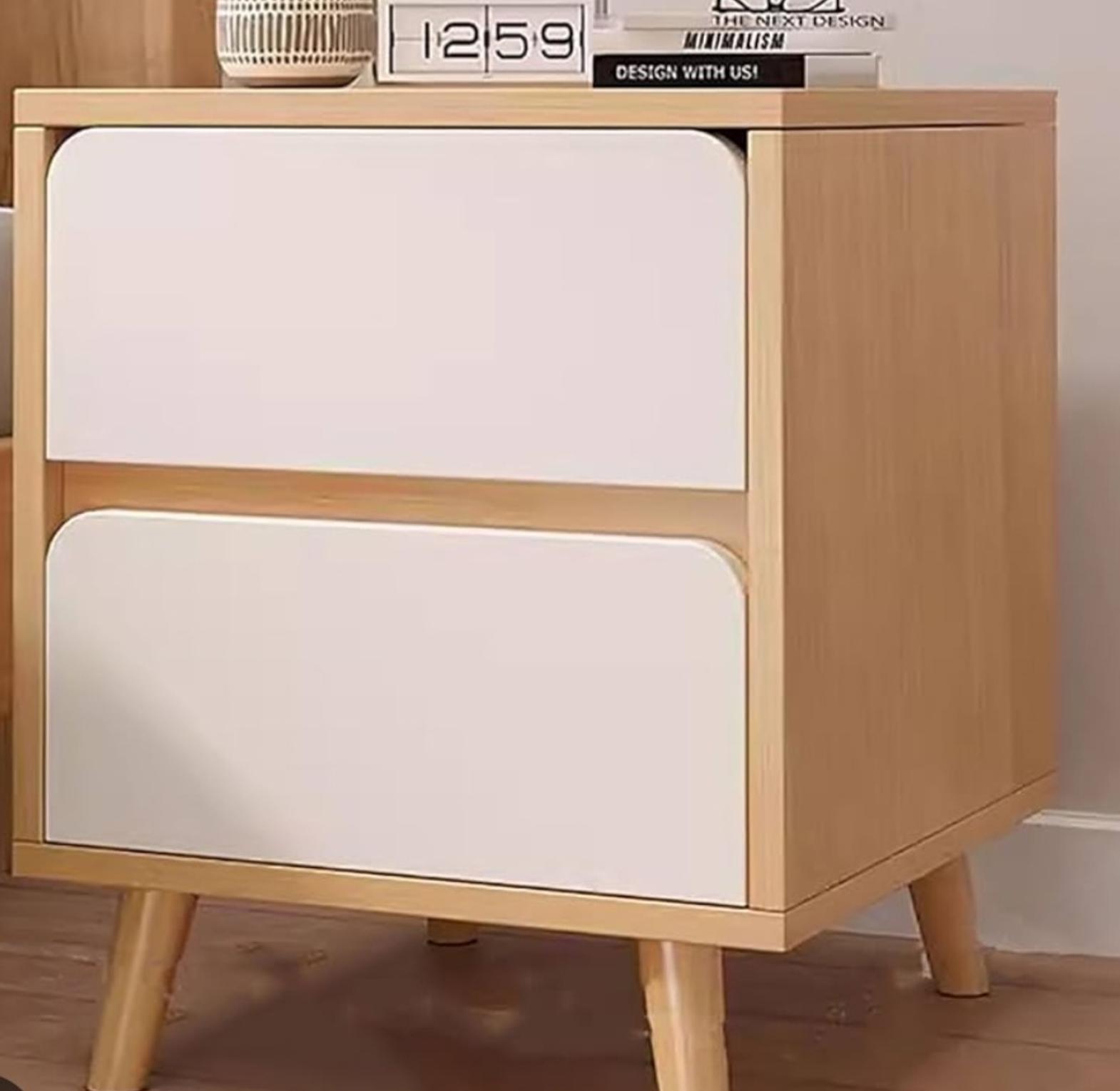Upgrade your bedroom with this sleek Modern Wooden Bedside Cabinet, a perfect blend of functionality and minimal style. Measuring 40cm in height, length, and width, this compact cabinet is ideal for small spaces while offering ample storage with two smooth-glide drawers. The clean white finish (also available in tan/white) pairs beautifully with the natural wood-toned tapered legs, giving a fresh Nordic look to any room.