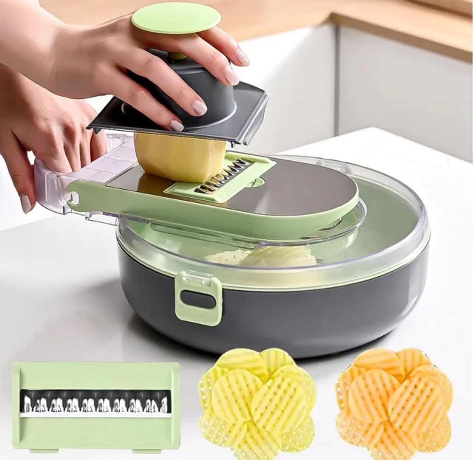 This multi-blade vegetable slicer/cutter is a must-have kitchen tool for anyone looking to save time and enhance meal preparation. With multiple interchangeable blades, it allows you to quickly slice, julienne, or dice vegetables to your desired thickness and shape, making meal prep faster and more efficient. The ergonomic design ensures a comfortable grip, while the sturdy construction ensures long-lasting durability. Whether you're preparing salads, stir-fries, or garnishes, this slicer/cutter makes the process simpler, safer, and more precise. Easy to clean and store, it’s a versatile addition to any kitchen, offering both convenience and professional-quality results.