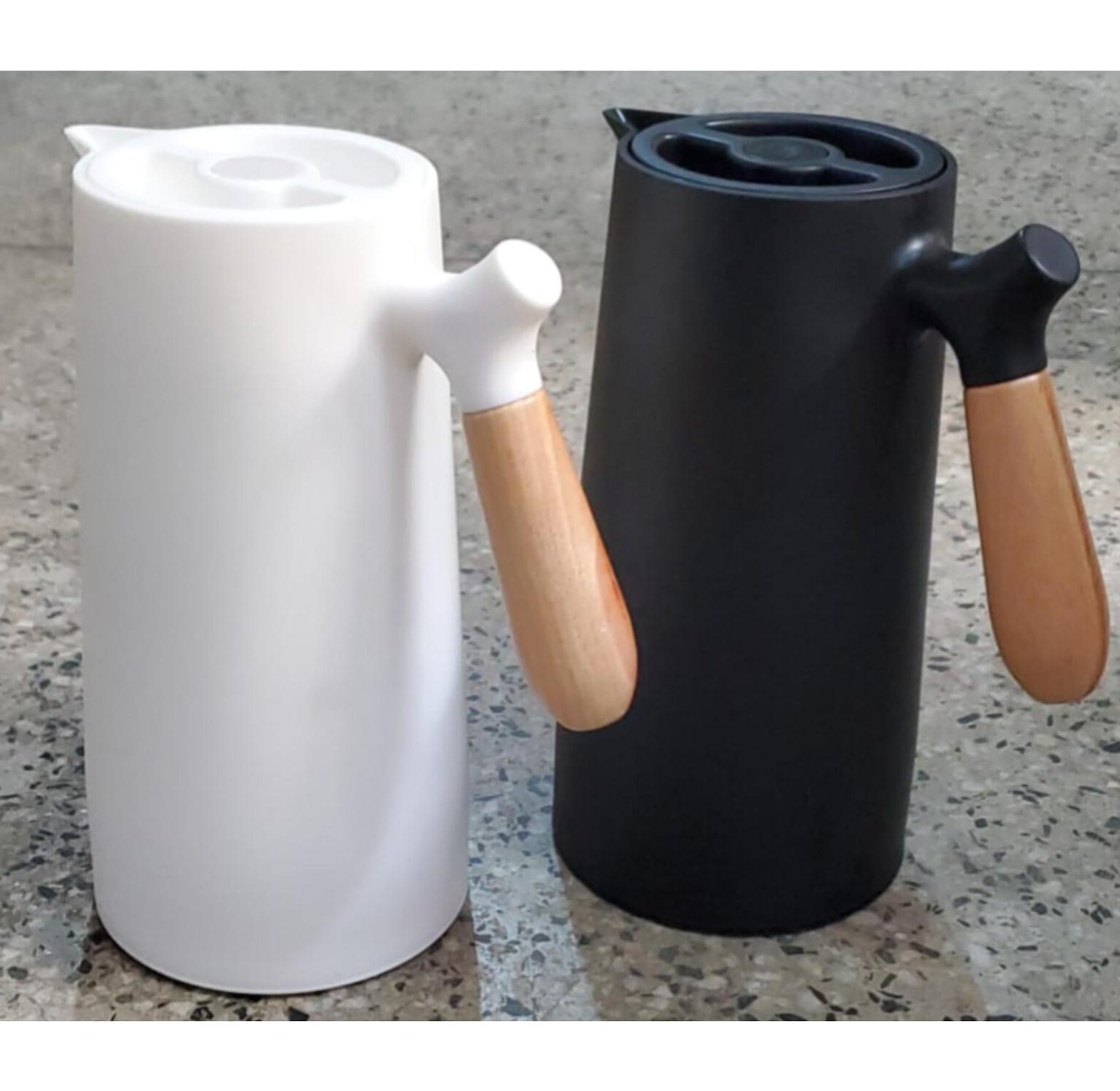 Bring Scandinavian elegance to your kitchen or workspace with our Nordic Thermo Flask with Wooden Handle. Featuring a 1-liter capacity, this flask combines modern minimalism with natural warmth, available in clean white or bold black finishes. The smooth, ergonomic wooden handle offers a comfortable grip and stylish contrast, while the insulated interior maintains the temperature of your beverages—hot or cold—for extended hours. Ideal for serving coffee, tea, or water at home, in the office, or during small gatherings, this thermo flask is both functional and beautifully designed, blending seamlessly into modern or minimalist interiors.