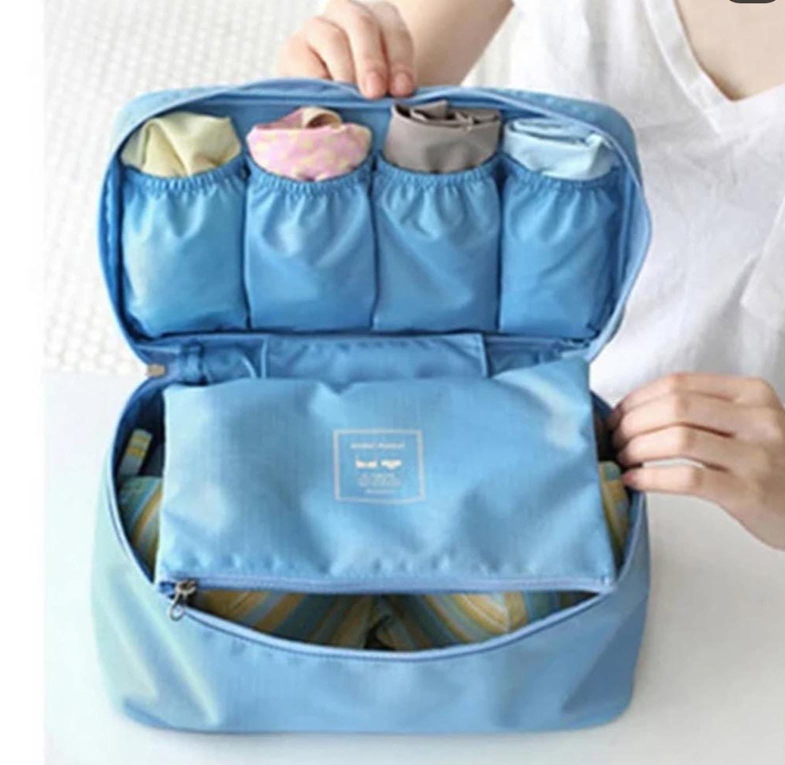 Travel smarter with this compact and portable undergarment organizer, designed to keep your essentials in perfect order. Featuring multiple compartments for underwear, bras, socks, and other delicates, it ensures everything stays neatly separated and easy to find. The lightweight yet durable design makes it ideal for any trip, while the secure zipper closure keeps your items protected. Whether for a weekend getaway or an extended vacation, this travel-friendly organizer maximizes space in your luggage, helping you stay effortlessly organized and stress-free while on the move.