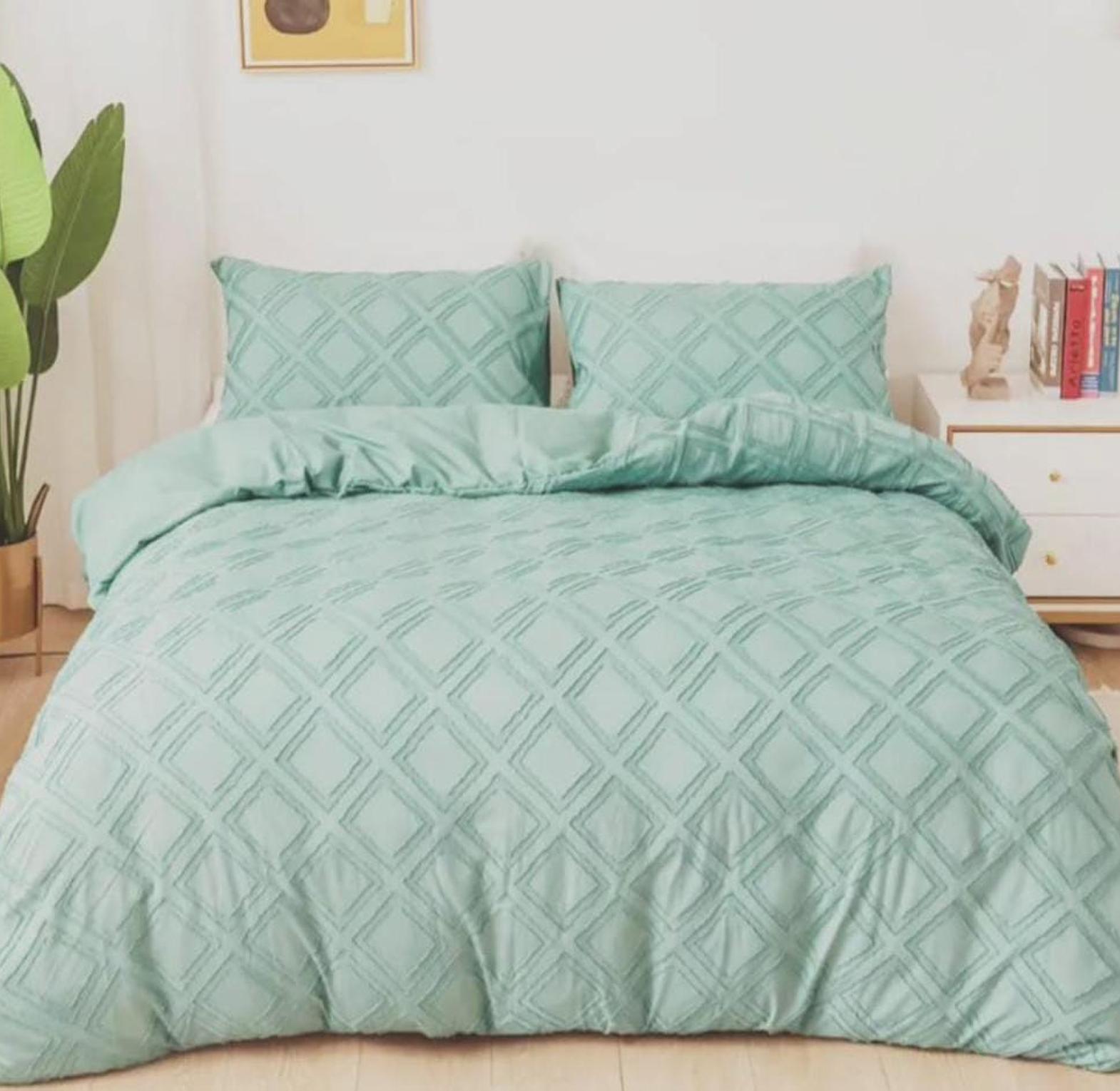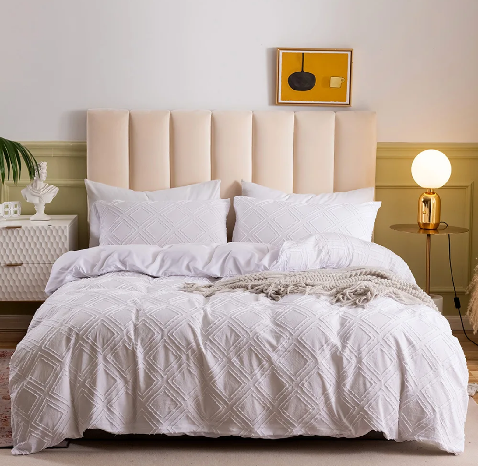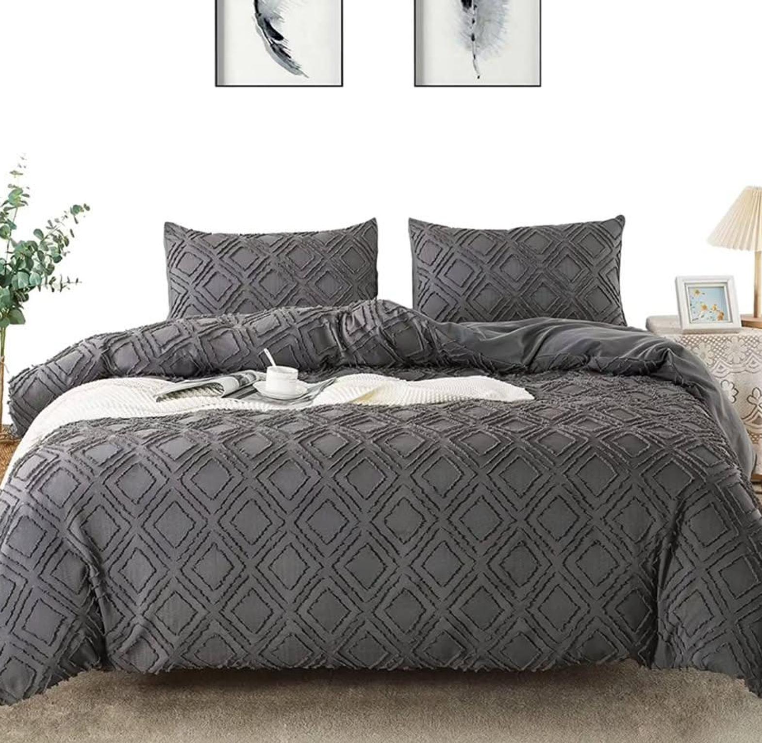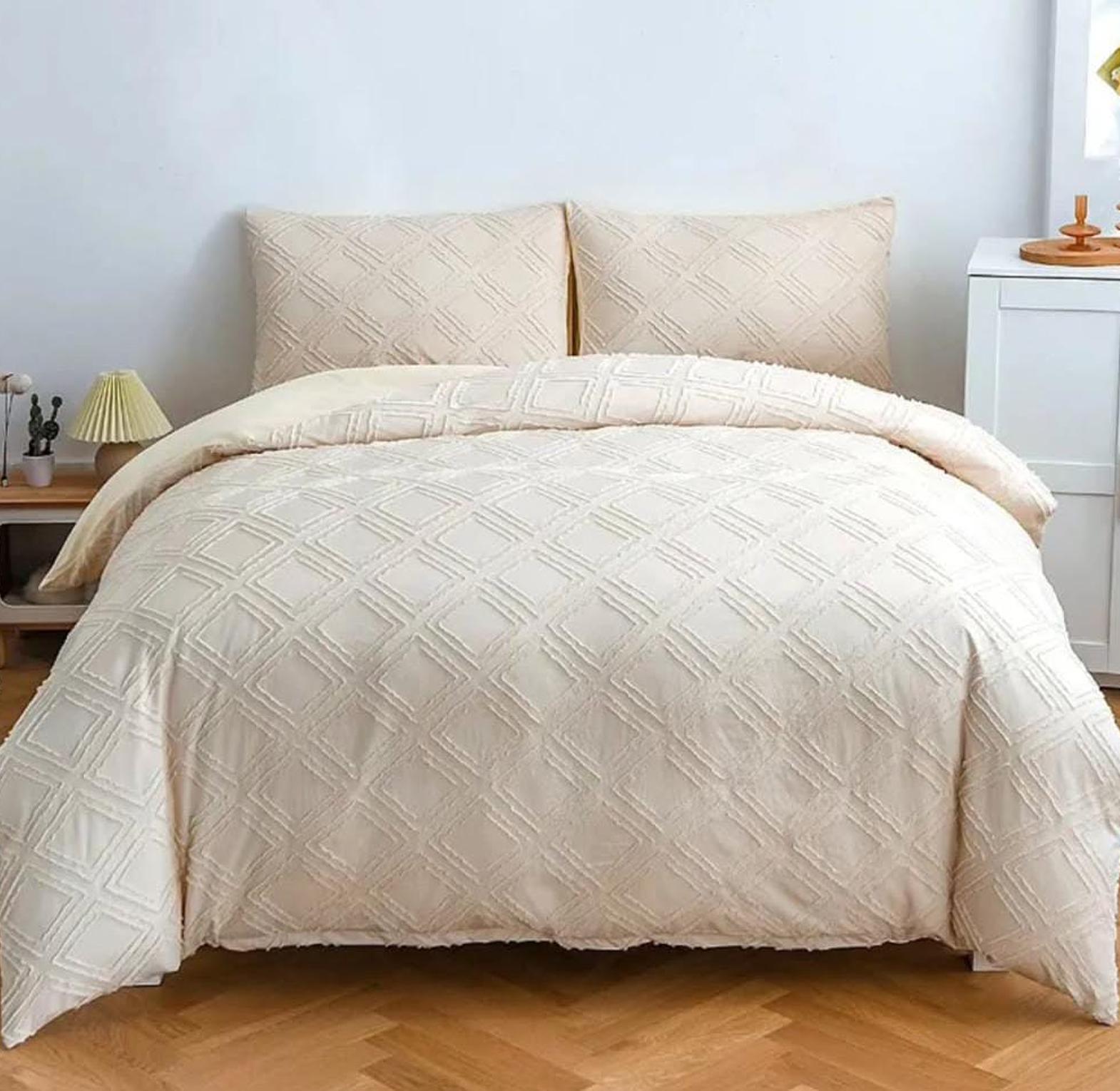 Elevate your sleep space with this quality 3-piece tufted duvet cover set, thoughtfully crafted from soft, breathable fabric to provide both comfort and sophistication. Each piece—the duvet cover and two matching pillow shams—features hand-stitched tufting that adds subtle dimensional detailing, creating a timeless look that complements modern, traditional, or boho interiors. The durable material is designed to withstand frequent laundering without losing its loft or color, while the hidden button or zipper closures keep your insert neatly in place for a flawless finish. Whether you’re redesigning your master suite or outfitting a guest room, this set delivers the perfect blend of style, performance, and cozy luxury.