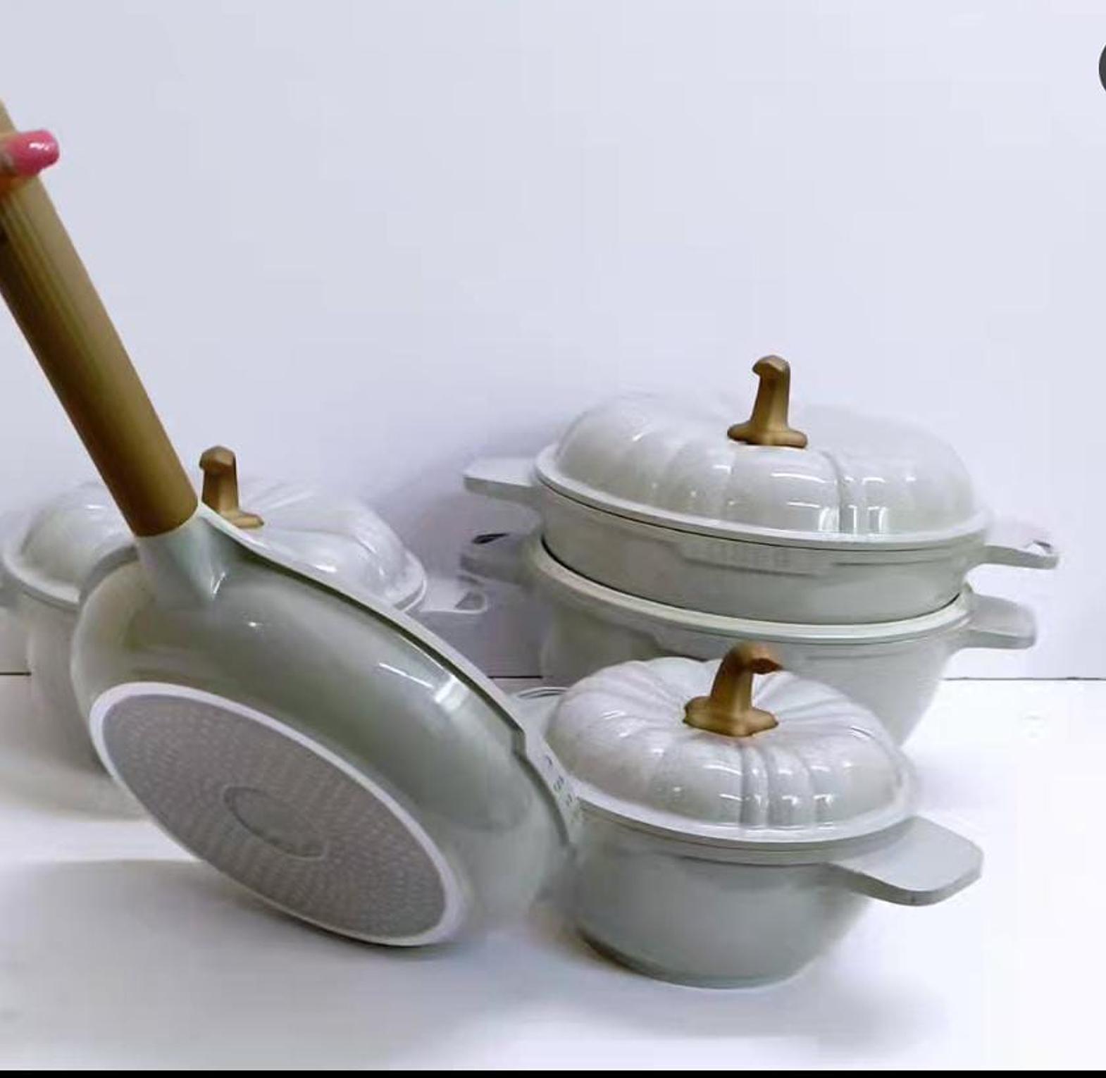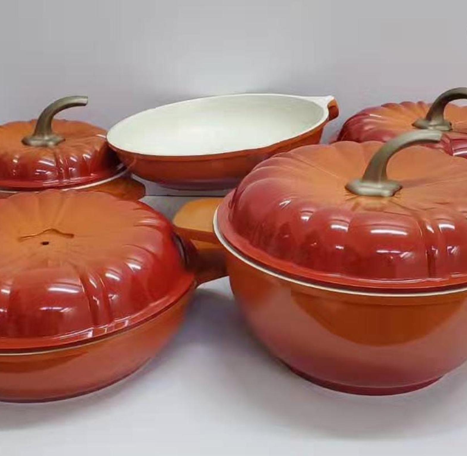 Elevate your kitchen with this exquisite cookware set, designed for both functionality and style. Each piece in the set is crafted from high-quality, durable materials that ensure even heat distribution for perfect cooking results every time. The standout feature is the beautifully designed pumpkin-shaped lids, adding a touch of whimsy and elegance to your cookware collection. Perfect for everyday cooking or special occasions, this set is as practical as it is visually appealing. Whether you’re preparing hearty stews, sautéing vegetables, or simmering soups, this cookware set delivers reliable performance and makes a charming addition to any kitchen decor.