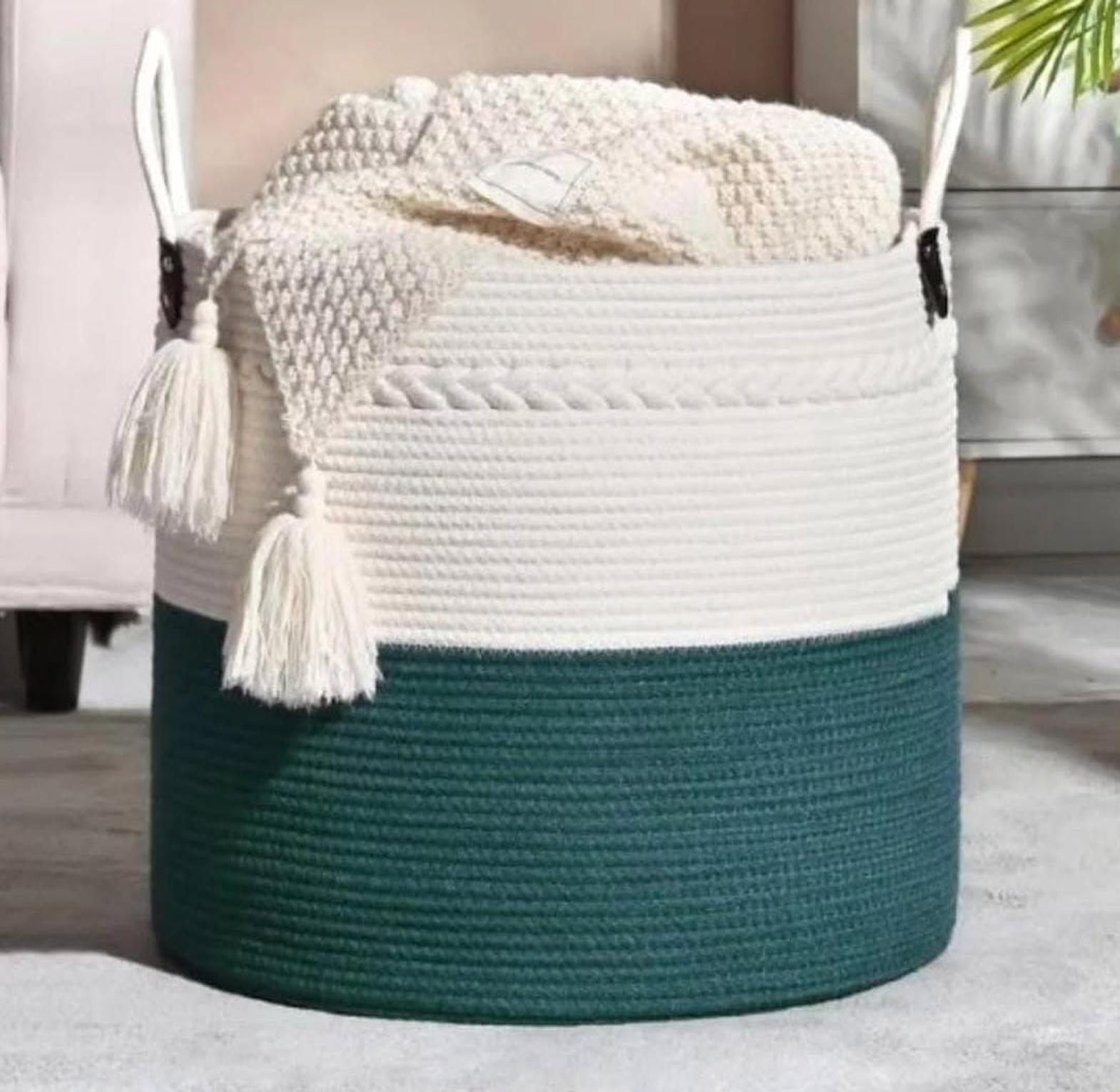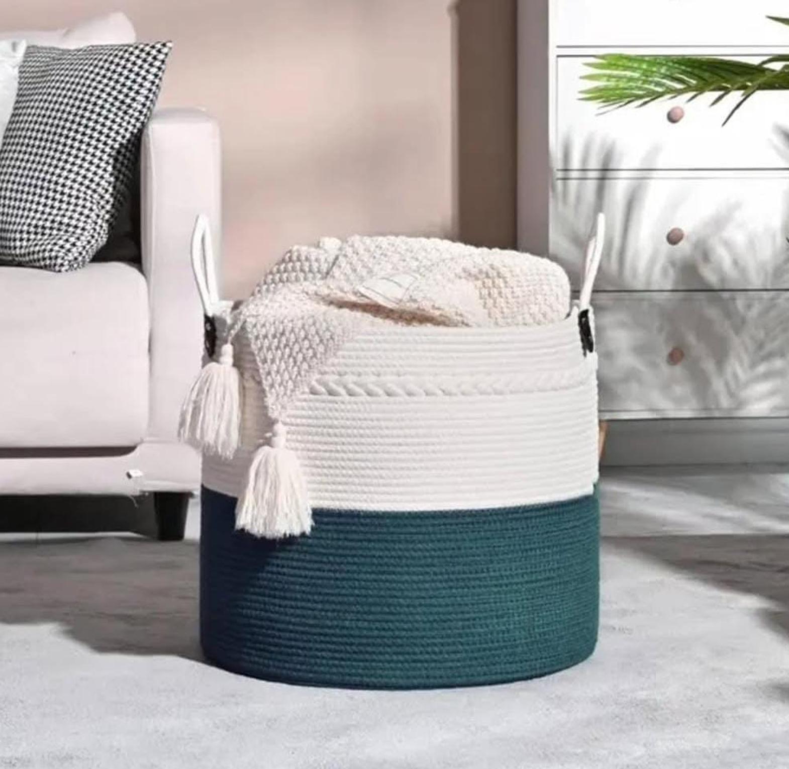 Crafted from high-quality cotton rope, this basket offers both strength and softness, making it ideal for a variety of storage needs. Whether you’re organizing blankets, toys, laundry, or other household items, this versatile basket provides ample space while maintaining a neat, tidy appearance. The sturdy yet lightweight design allows for easy handling, and the natural texture adds a cozy, rustic charm to any space. Its neutral color complements a range of decor styles, from modern to farmhouse. Durable, practical, and stylish, this cotton rope basket is the perfect addition to any home, helping you stay organized while enhancing your decor