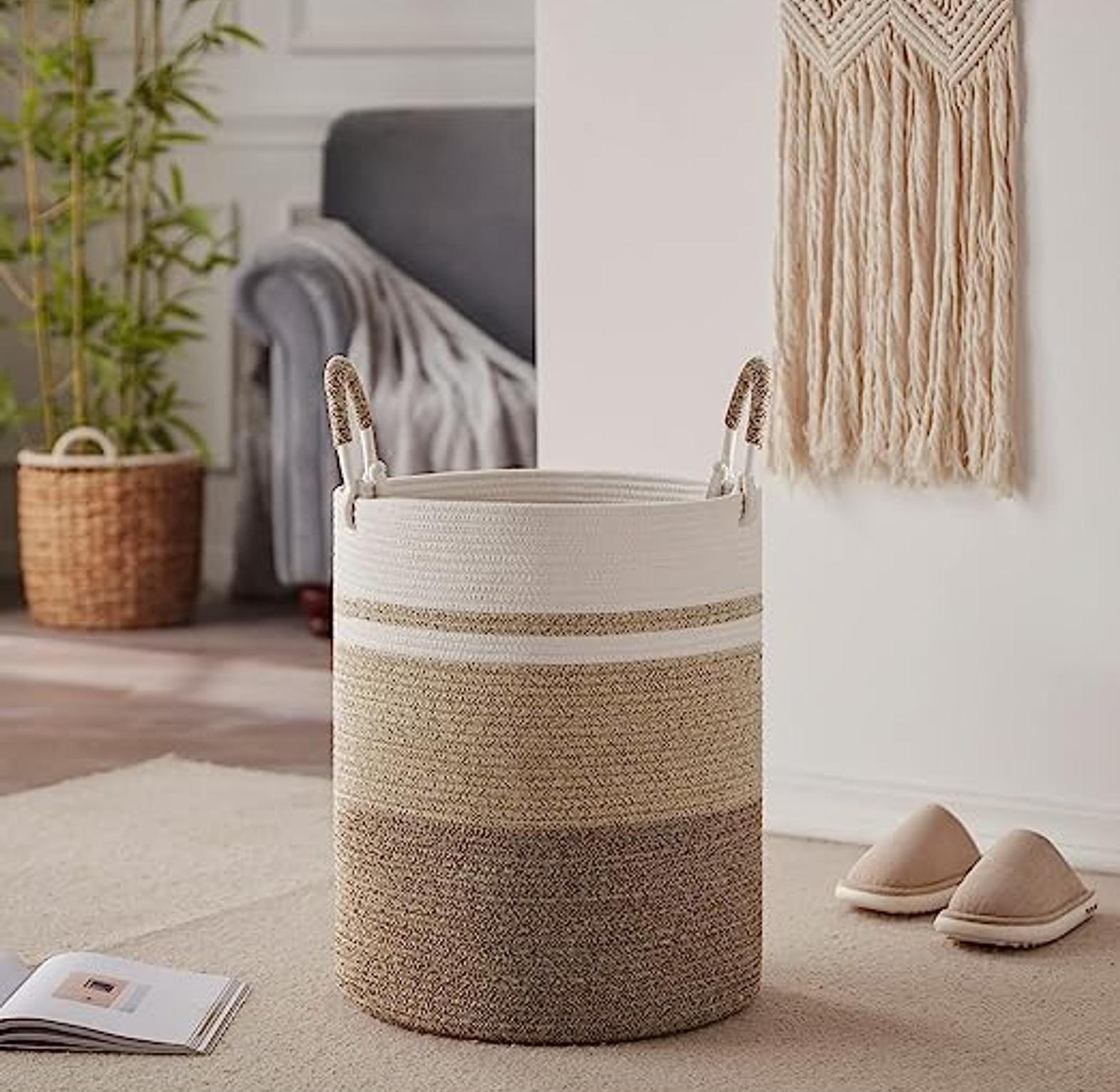 Crafted from high-quality cotton rope, this basket offers both strength and softness, making it ideal for a variety of storage needs. Whether you’re organizing blankets, toys, laundry, or other household items, this versatile basket provides ample space while maintaining a neat, tidy appearance. The sturdy yet lightweight design allows for easy handling, and the natural texture adds a cozy, rustic charm to any space. Its neutral color complements a range of decor styles, from modern to farmhouse. Durable, practical, and stylish, this cotton rope basket is the perfect addition to any home, helping you stay organized while enhancing your decor.