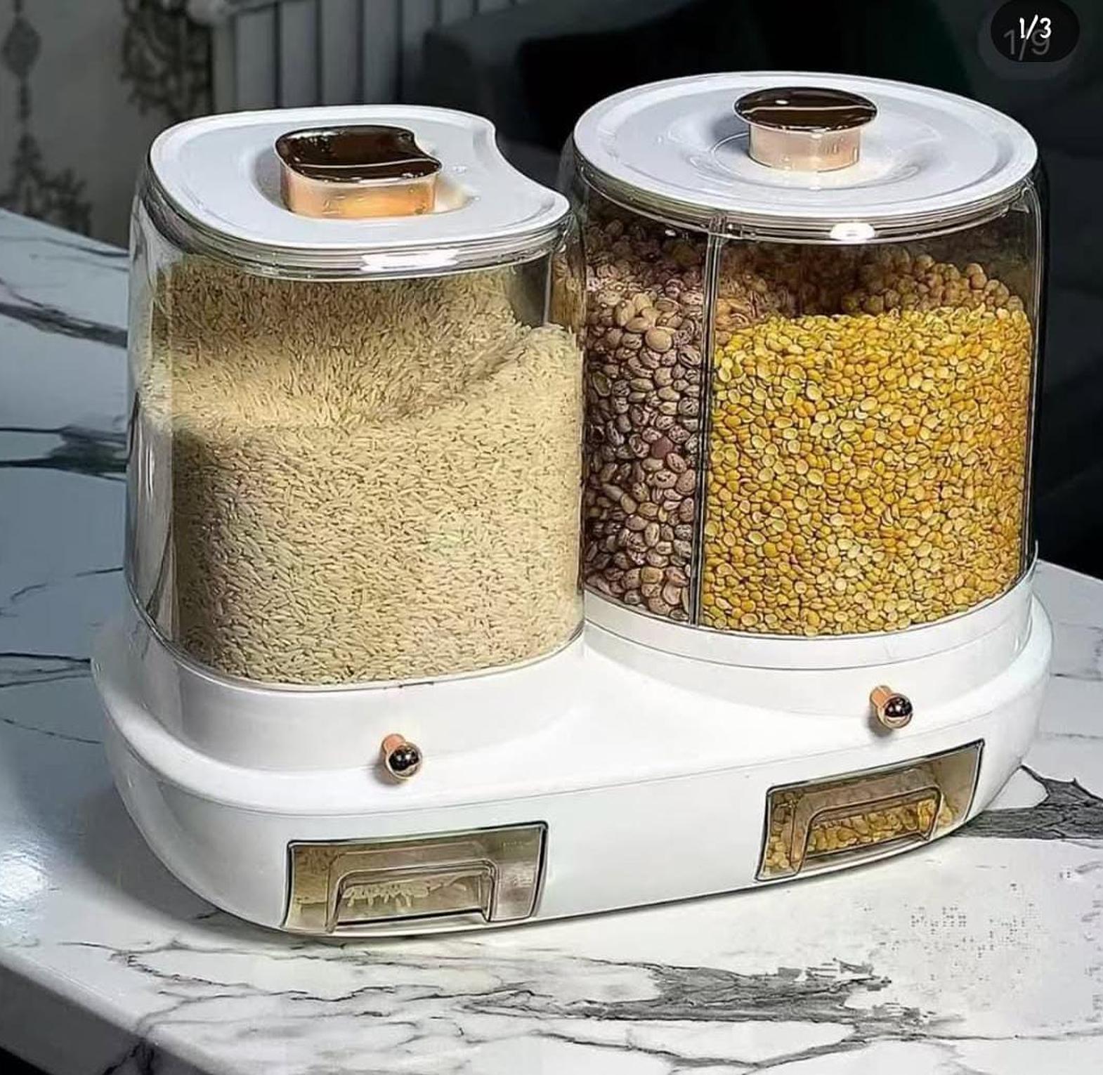 This rotating cereal storage container offers a smart and convenient way to keep your cereals fresh while saving space in your kitchen. Featuring a 360-degree swivel base, it allows effortless access to multiple compartments without the need to move the entire unit, making breakfast prep quicker and tidier. Constructed from durable, clear materials, the container lets you monitor cereal levels at a glance and helps protect contents from moisture and pests with airtight lids. Its sleek, compact design fits neatly on countertops or inside pantries, combining functionality with a clean, modern look. Perfect for households that value organization and freshness, this container turns storage into a seamless part of your daily routine.