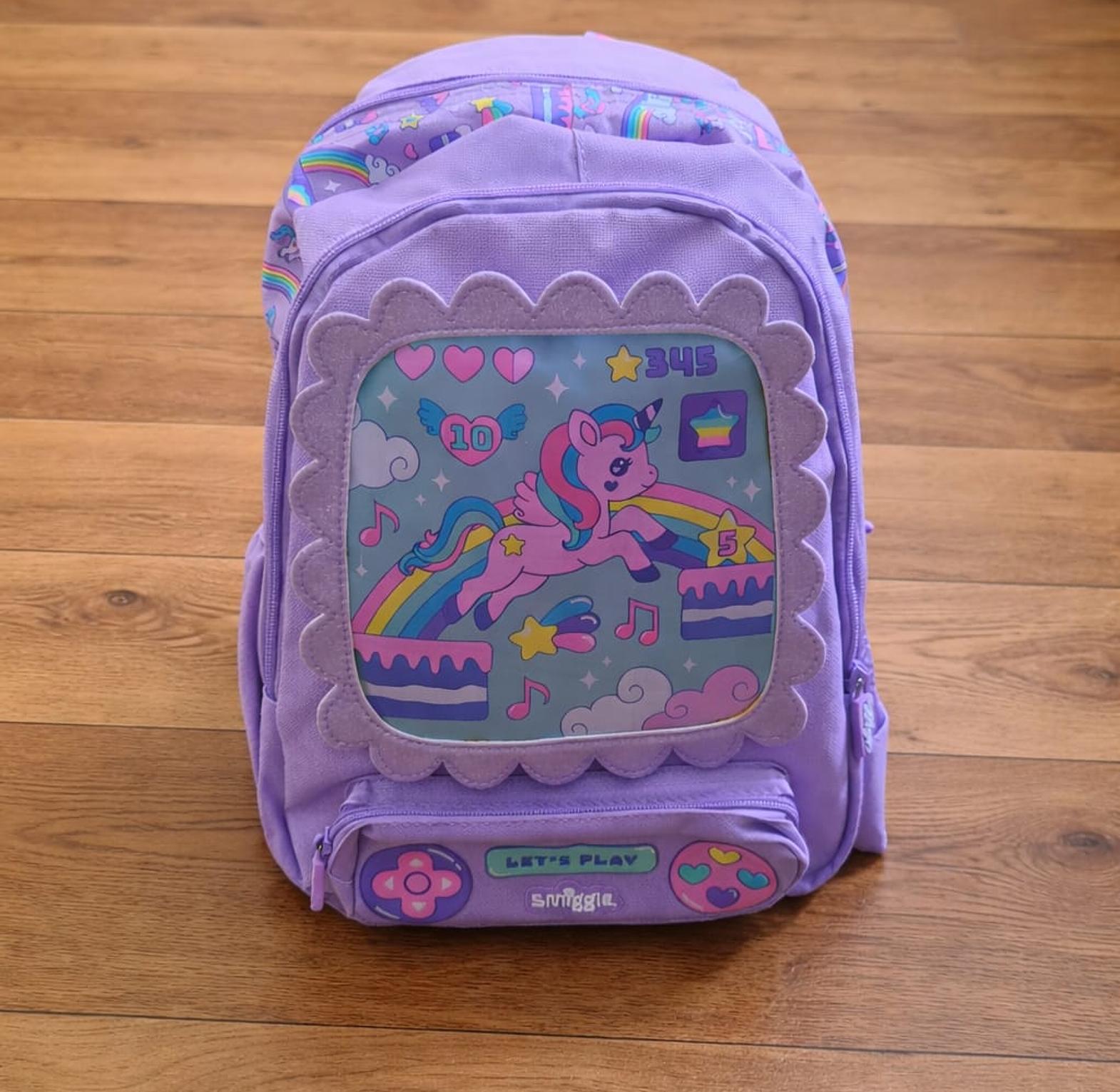 Add fun and comfort to your child’s school day with this Smiggle Premium Quality School Backpack. Designed with a bright, playful cartoon pattern and a cheerful front pocket, this bag is perfect for young learners who love color and character-themed accessories.