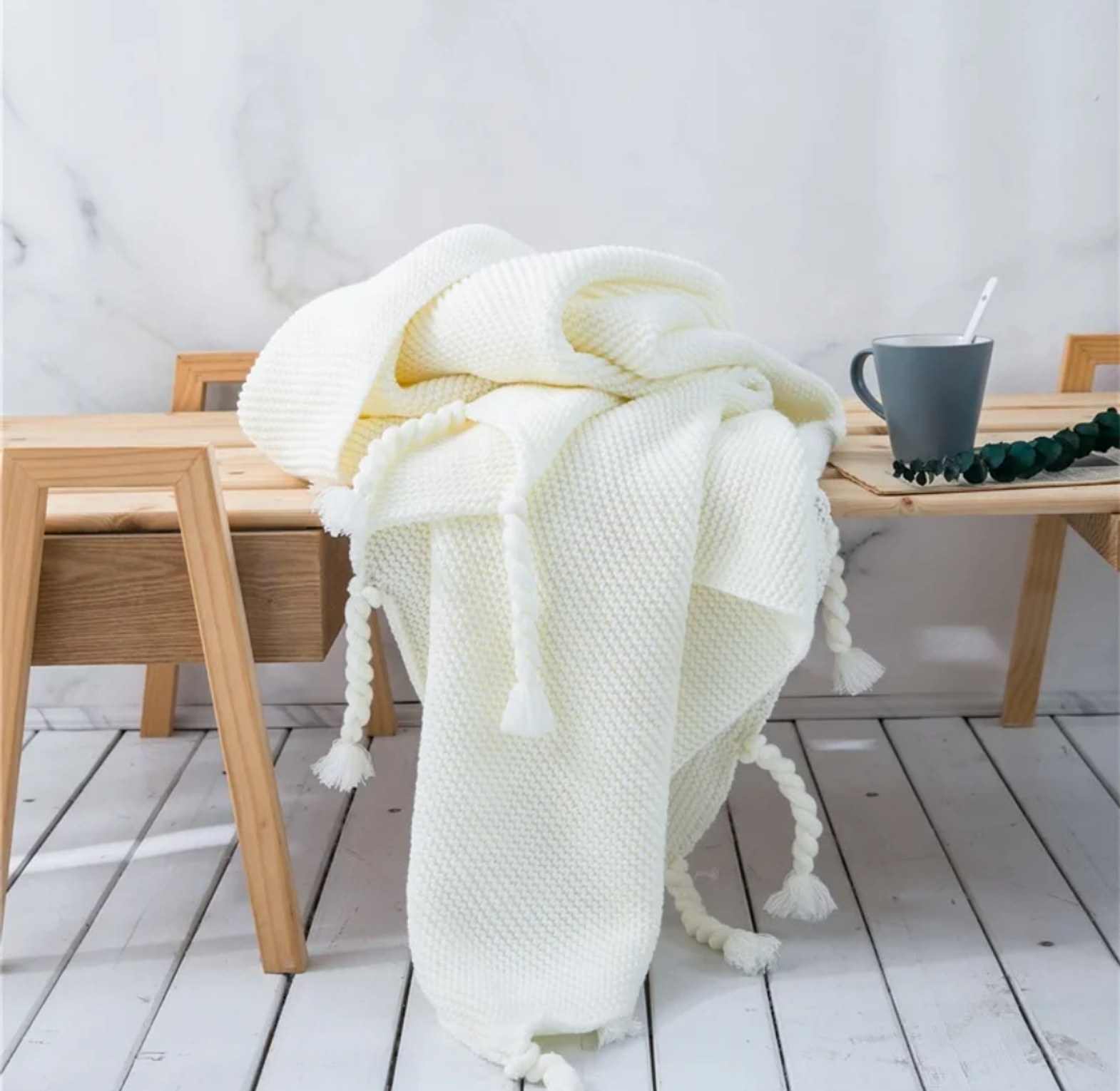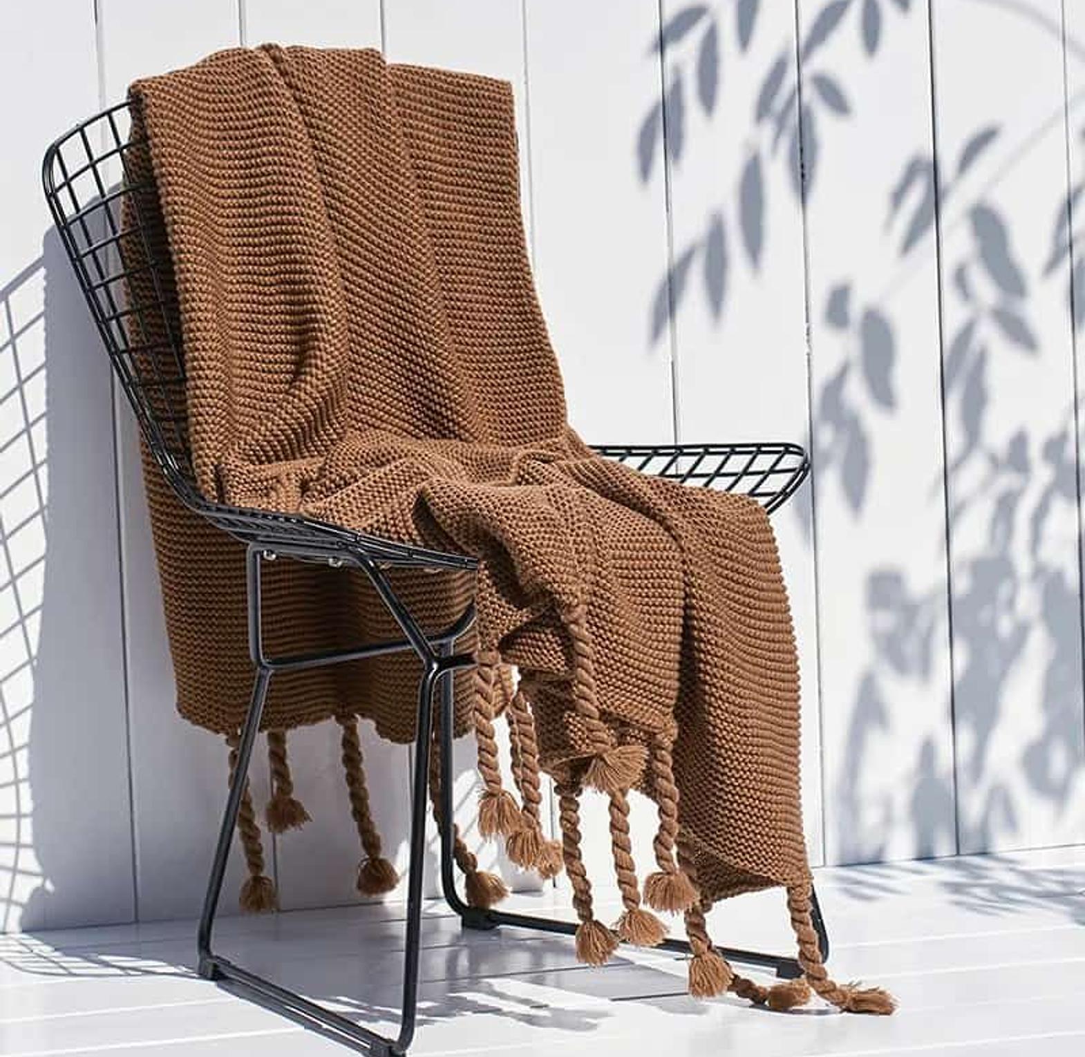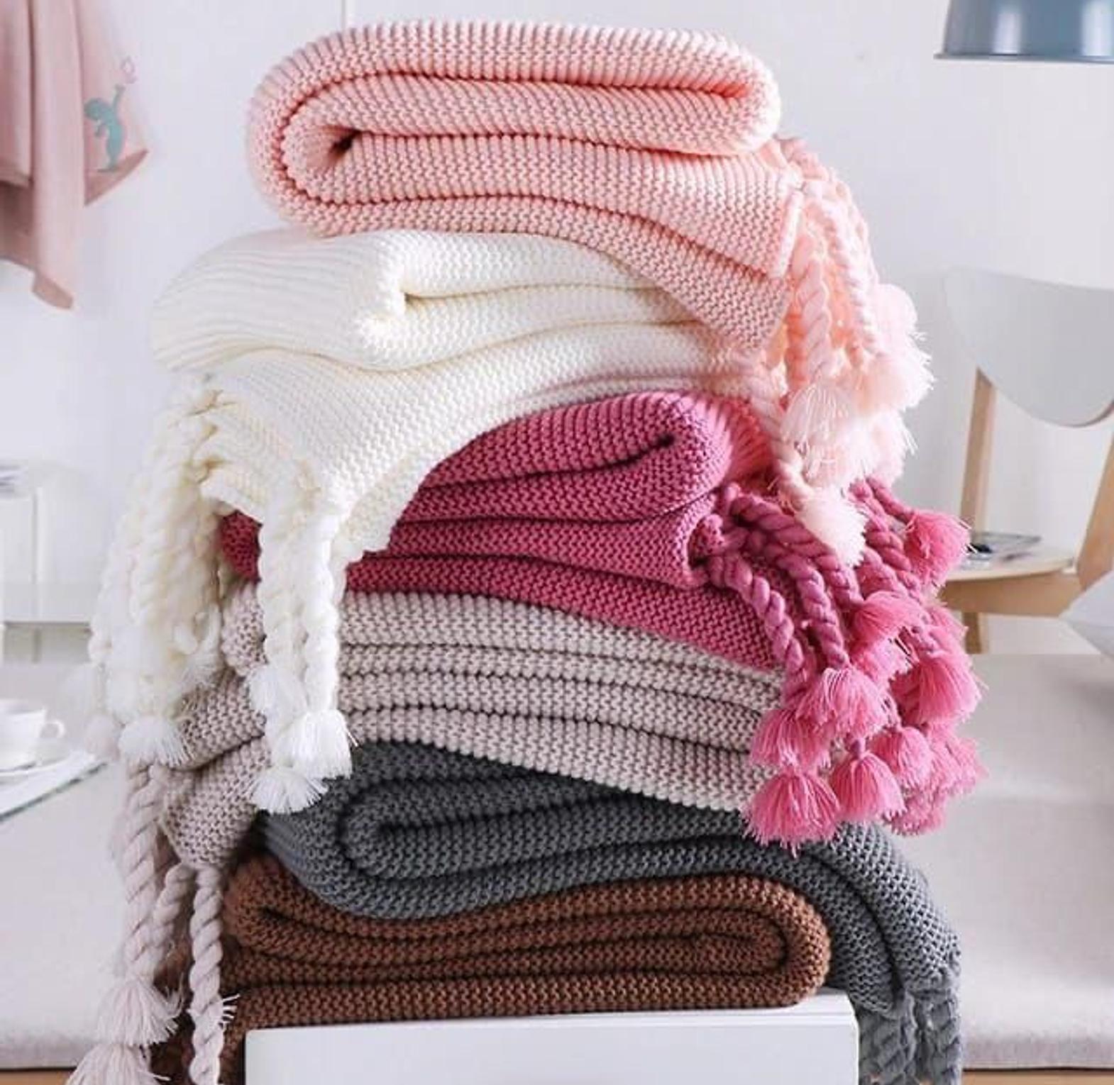 Available in a beautiful range of cozy tones—from neutrals to pastels and deep shades—each blanket features charming tassel detailing for a playful yet elegant finish.