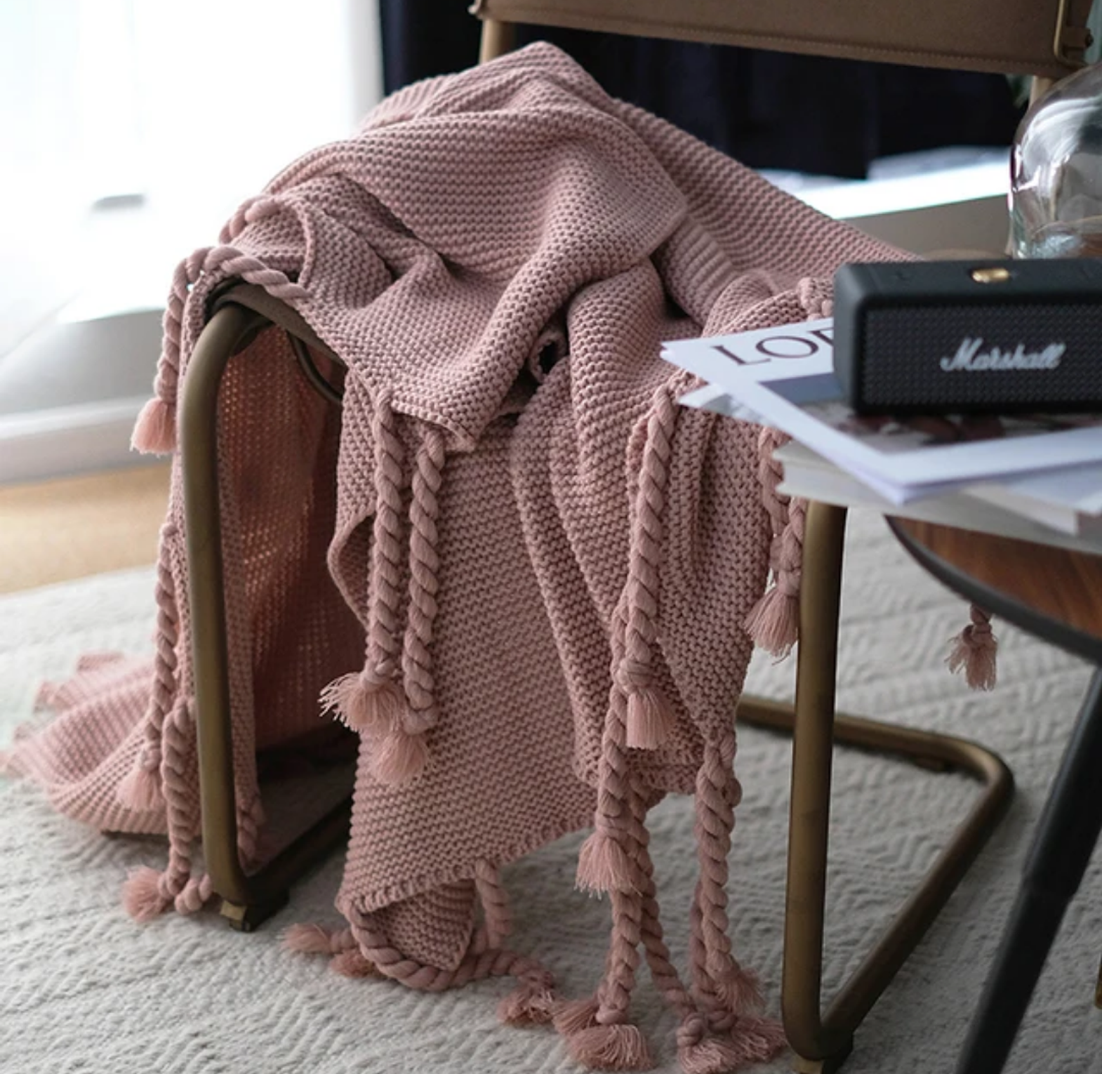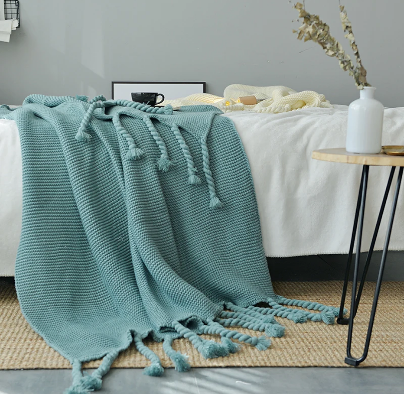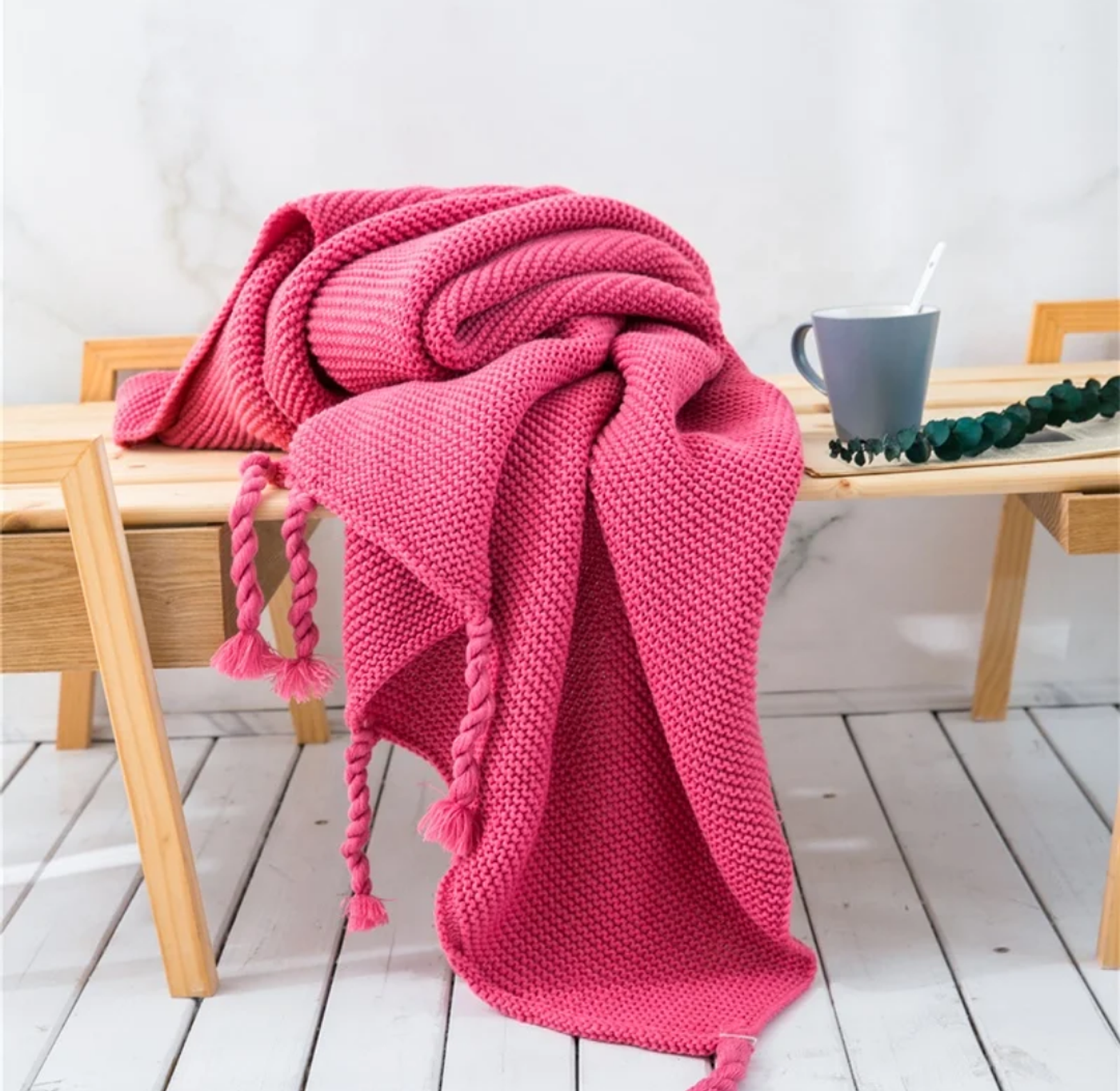 Available in a beautiful range of cozy tones—from neutrals to pastels and deep shades—each blanket features charming tassel detailing for a playful yet elegant finish.