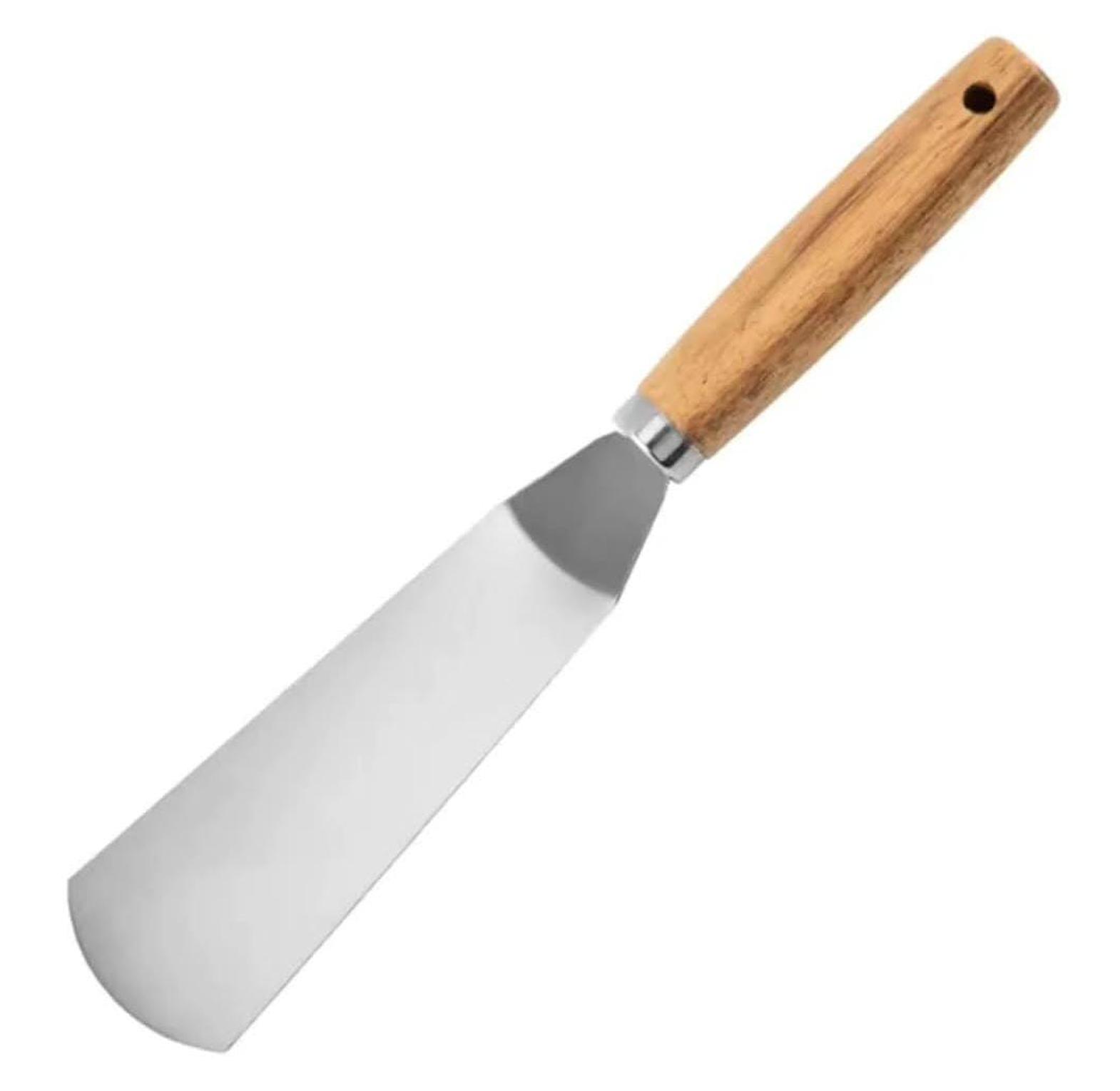 This stainless steel kitchen spatula with a wooden handle is a versatile tool designed for both cooking and serving with ease. The durable stainless steel blade is perfect for flipping, stirring, and scraping, while maintaining its strength and shape through heavy use. The wooden handle offers a natural, ergonomic grip, ensuring comfort and control while you work. Whether you're preparing delicate fish, sautéing vegetables, or serving pancakes, this spatula is designed to handle a wide range of kitchen tasks. Its timeless design and practical functionality make it a staple in any kitchen, combining style and durability in one essential tool.
