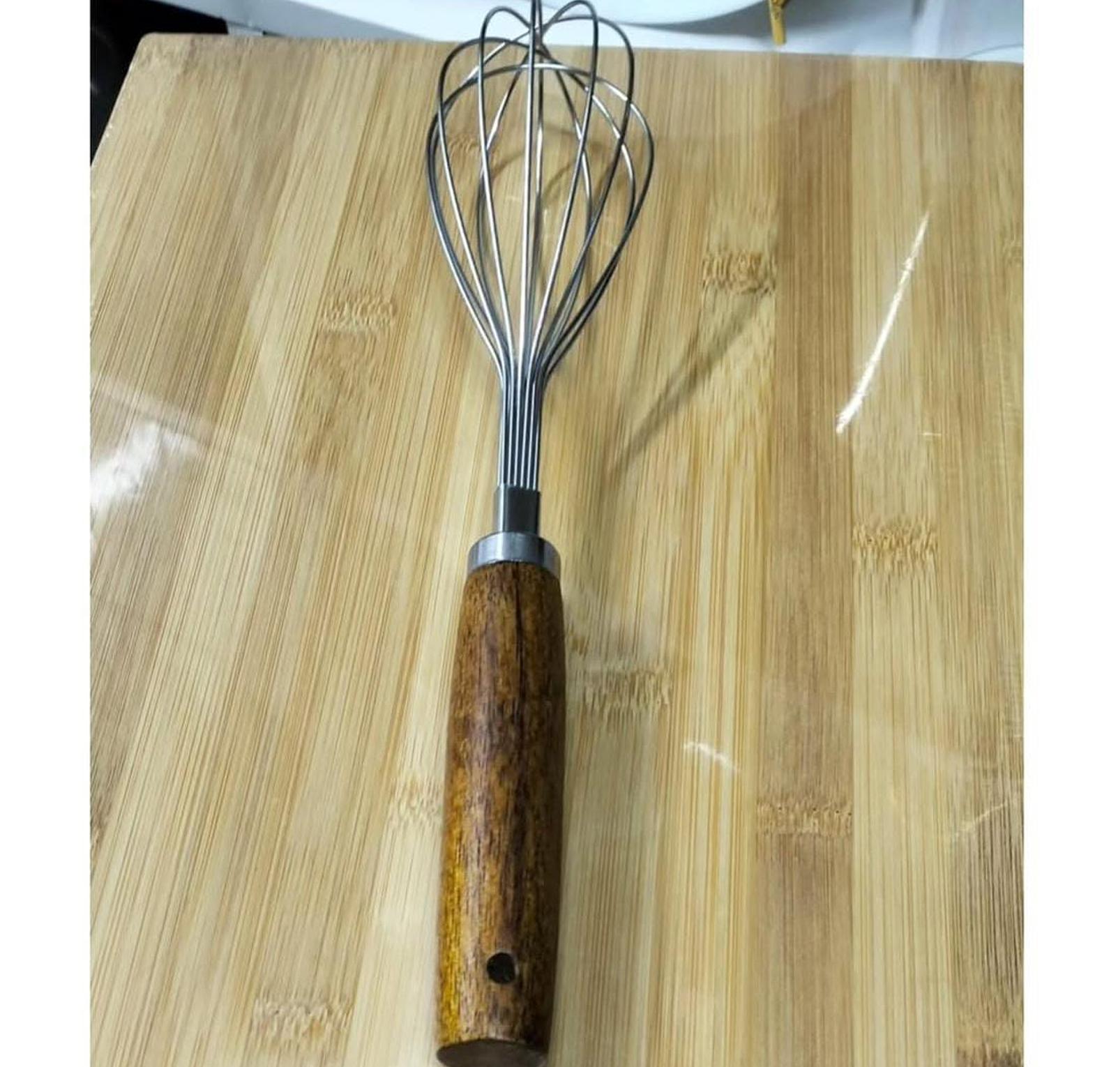 This stainless steel whisk with a wooden handle is the perfect addition to any kitchen, combining functionality with classic style. The sturdy stainless steel wires are designed to handle a variety of tasks, from beating eggs to mixing batter or whipping cream. The ergonomic wooden handle offers a comfortable grip, ensuring smooth, controlled motion while you work. Ideal for both everyday use and special baking occasions, this whisk is easy to clean and adds a touch of rustic charm to your kitchen tools. Its timeless design makes it a must-have for any home cook or baker looking to elevate their kitchen essentials.