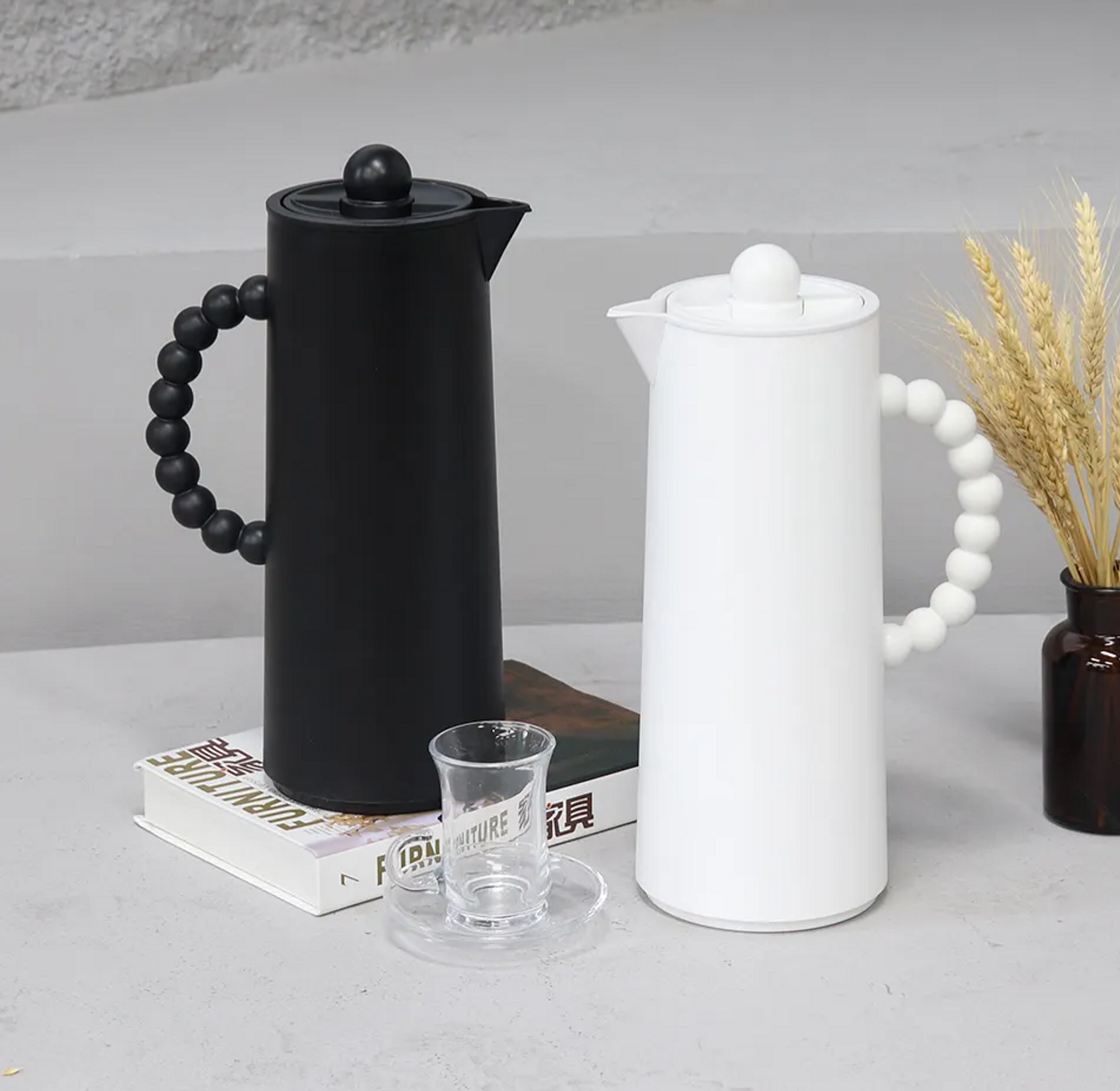 Add a touch of modern elegance to your routine with our Stylish Thermos Flask, designed with a signature bead-like pearl handle for a refined, standout look. Available in two timeless colors—black and grey, this insulated flask keeps drinks hot or cold for hours thanks to its double-wall vacuum design. The leak-proof lid makes it ideal for commuting, office use, or travel, while the comfortable handle adds a decorative yet practical flair. Whether you're sipping coffee, tea, or water, this flask delivers both style and performance, making it an ideal gift or personal must-have for those who love a little luxury in their day.