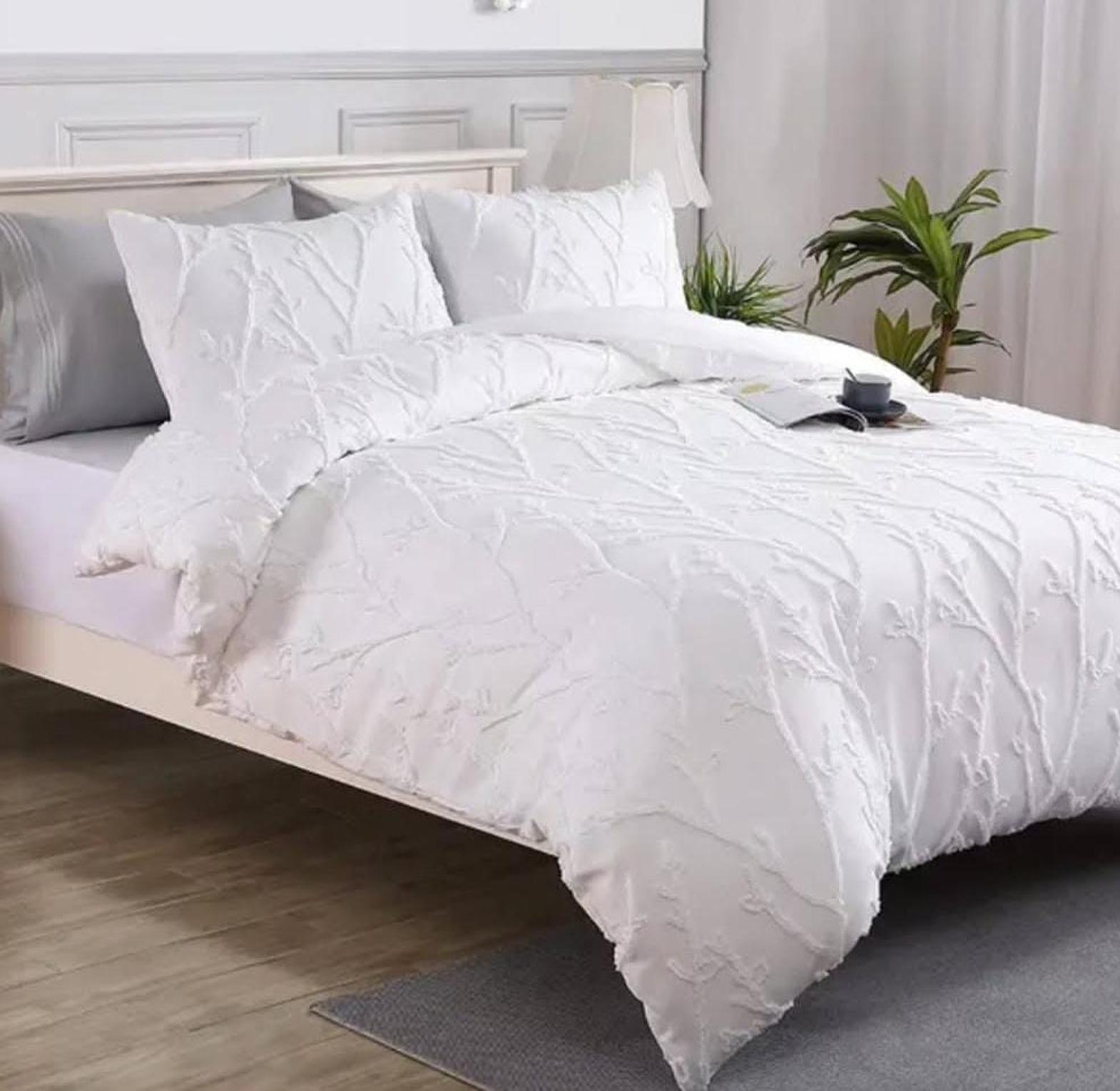 Elevate your bedroom decor with this tufted duvet cover set, a perfect combination of style and comfort. Featuring intricate tufted detailing, this set adds a touch of sophistication and texture to your bed while maintaining a cozy and inviting feel. Made from high-quality, breathable fabric, it ensures a restful night's sleep by keeping you comfortable throughout all seasons. The set includes a duvet cover with a secure closure and matching pillowcases, making it a complete solution for a cohesive look. Durable, easy to care for, and irresistibly soft, this tufted duvet cover set is an ideal choice for anyone looking to blend luxury with practicality in their bedroom.