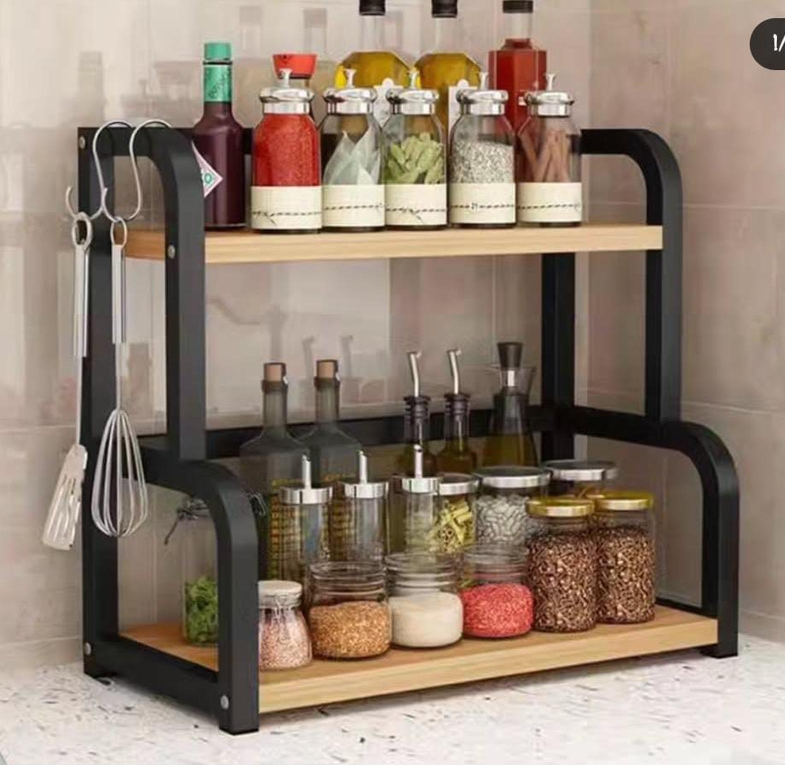 This two-layer countertop organizing rack is a practical and stylish solution for decluttering your kitchen, bathroom, or workspace. Constructed from sturdy materials with a clean, modern finish, it offers two spacious tiers to store spices, toiletries, condiments, or office supplies—making it ideal for daily organization. The open design ensures easy access and visibility, while the compact footprint utilizes vertical space efficiently, perfect for smaller surfaces. Whether you're aiming to streamline your cooking station or tidy up a vanity, this rack brings order and convenience to your countertop while maintaining a neat, polished appearance.
