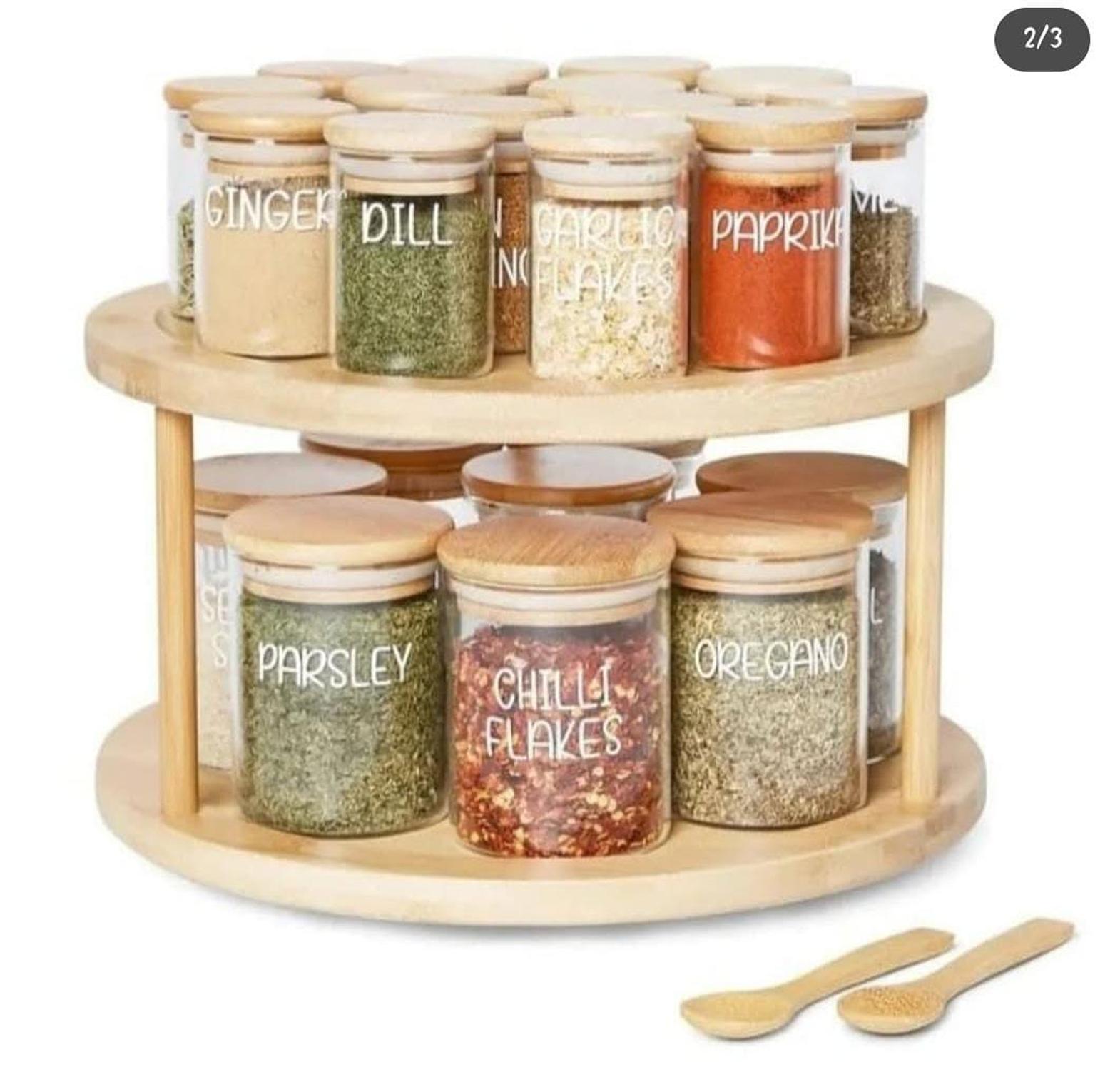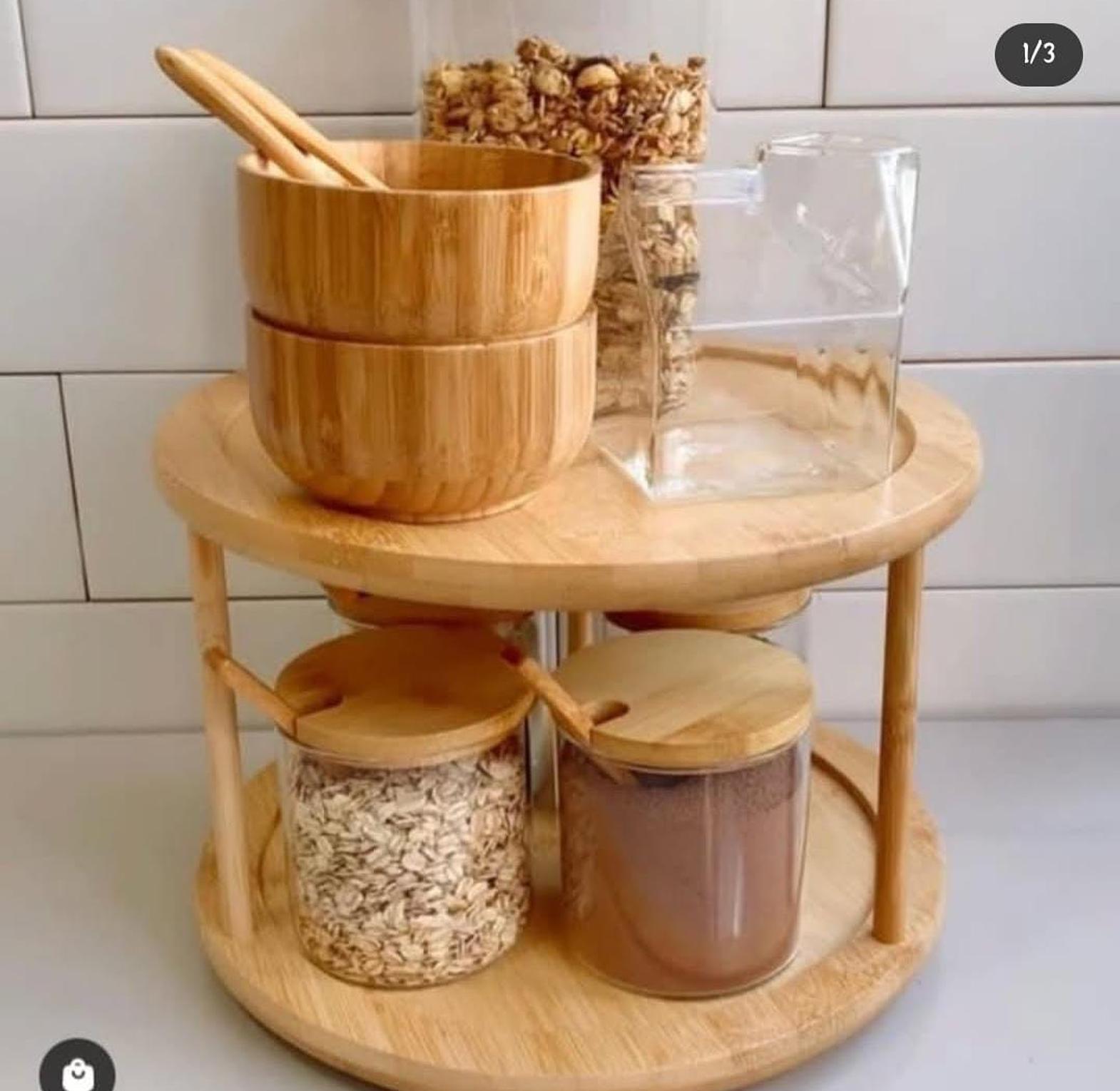 This two-tier rotating bamboo rack offers a clever and space-saving solution for organising your kitchen or bathroom essentials. Made from sustainable, eco-friendly bamboo, it provides a stylish yet durable option for storing items like spices, toiletries, or small kitchen tools. The rotating design allows for easy access to all your items with a simple spin, eliminating the need to dig through shelves or drawers. Its compact yet practical size fits seamlessly into any space, whether placed on countertops, in cabinets, or on vanity tables. Perfect for anyone looking to streamline organisation while adding a natural, elegant touch to their home, this rack is as functional as it is visually appealing.