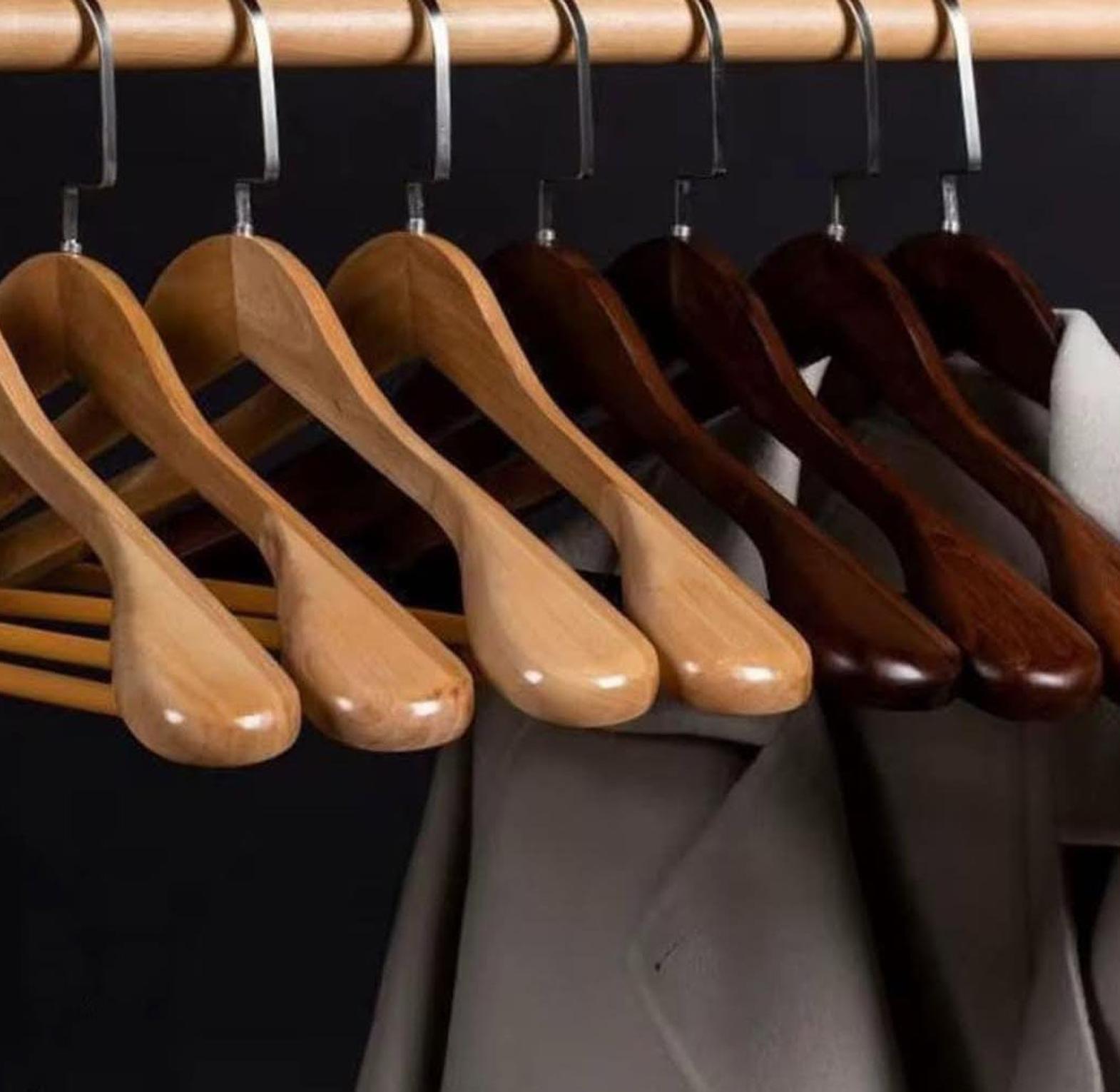 Crafted from premium wood and finished with a sleek, glossy surface, these wide wooden hangers are designed to keep your wardrobe in pristine condition while adding a refined touch to your closet. The wide structure is perfect for maintaining the shape of heavier garments like coats, blouses, and suits, preventing stretching or distortion. The smooth, polished finish not only enhances the hangers’ durability but also elevates the overall aesthetic of your closet. Ideal for those who value both style and functionality, these hangers are a must-have for keeping your clothing neatly arranged and beautifully displayed.
